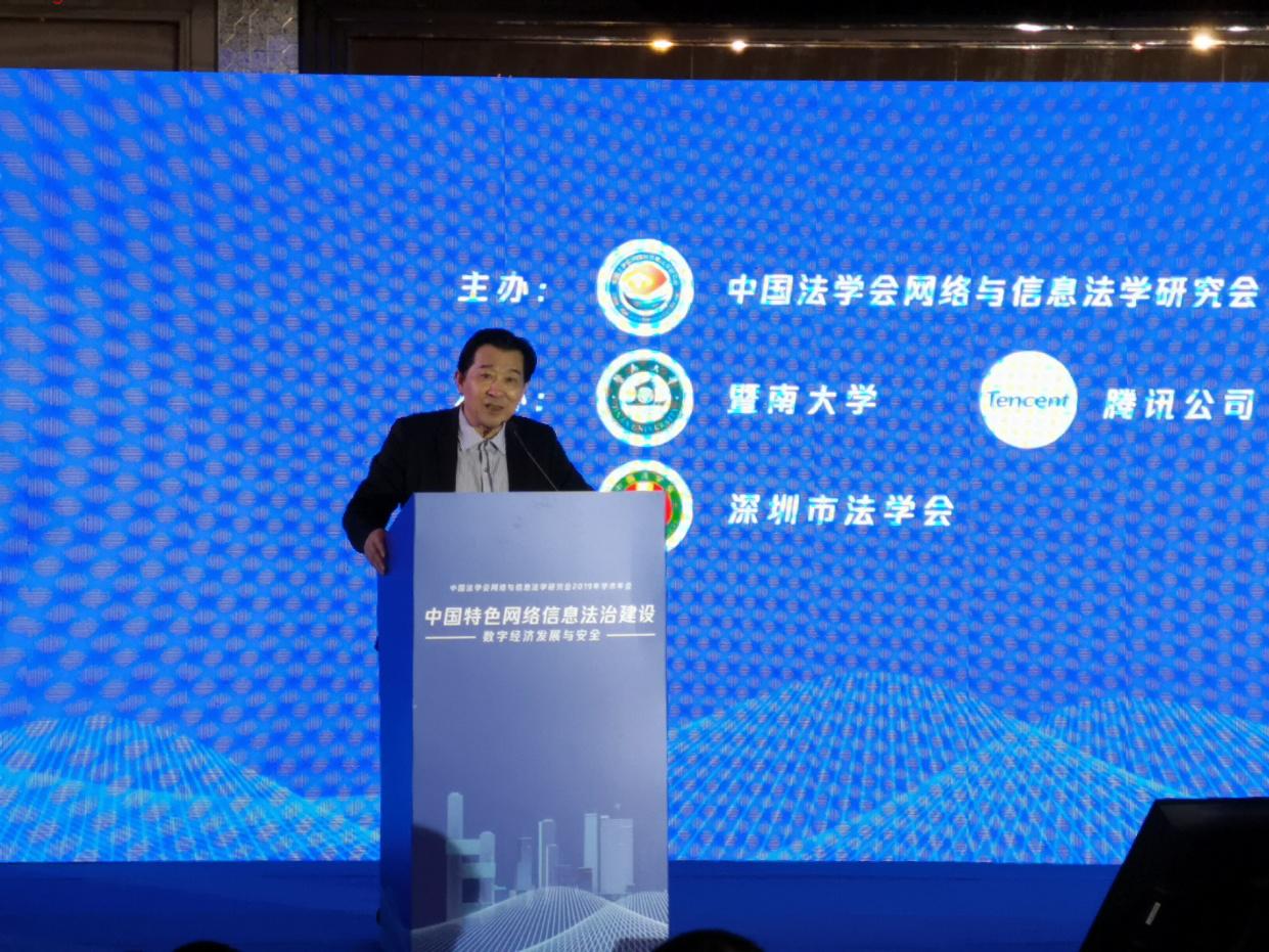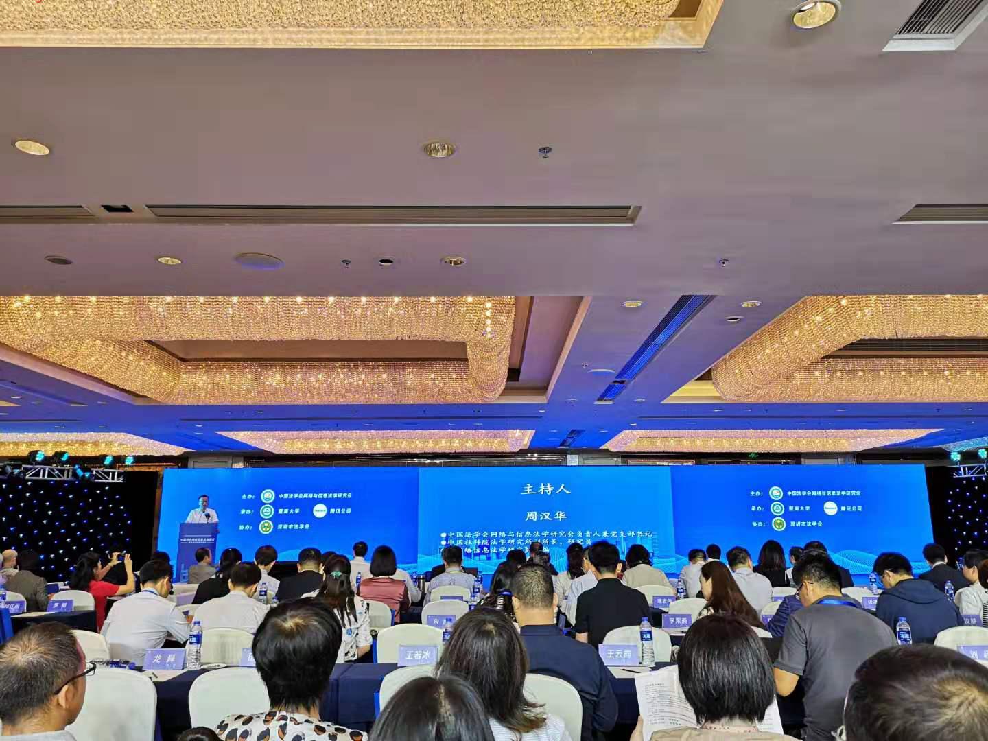 (通讯员 张倩)2019年10月13至14日,中国法学会网络与信息法学研究会2019年年会在深圳隆重召开。会议由中国法学会网络与信息法学研究会主办,暨南大学、腾讯集团承办,深圳市法学会协办。来自研究会理事会的成员、年会特邀嘉宾以及提交论文并经研究会确认的研究会员参加了本次会议。中国法学会网络与信息法学研究会负责人兼党支部书记周汉华教授主持本会,暨南大学副校长饶敏、腾讯公司法务副总裁江波、广东省法学会长梁伟发以及中国法学会副会长张苏军等领导出席开幕式并致辞。中国法学会网络与信息法学研究会副会长、中南财经政法大学法治发展与司法改革研究中心暨湖北法治发展战略研究院主任(院长)徐汉明教授,海南师范大学法学院副院长、副教授林必恒,中南财经政法大学法学院副教授陈实,中南财经政法大学法治发展与司法改革研究中心讲师叶强、徐凯,博士生孙逸潇,研究人员张新平、汪洋一行八人应邀出席了本次会议。