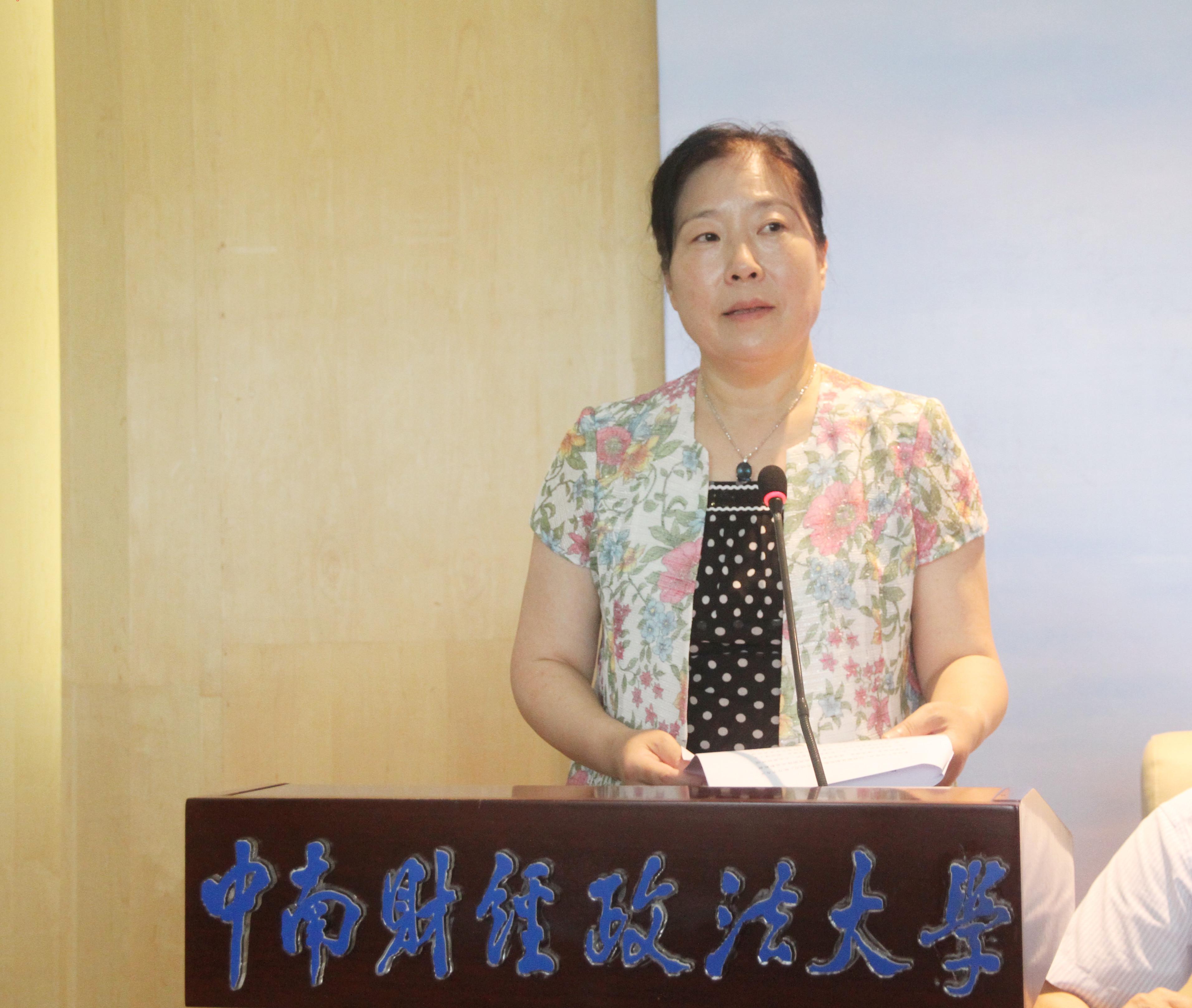 中南财经政法大学副校长姚莉教授致辞认为法治社会·长江(国际)论坛已经成为学校的一张靓丽名片。她代表学校热烈欢迎中外专家学者参加本次论坛研讨 -新时代法学‘三大体系’的历史定位-,为加快构建中国特色法学学科体系、学术体系、话语体系建言献策。