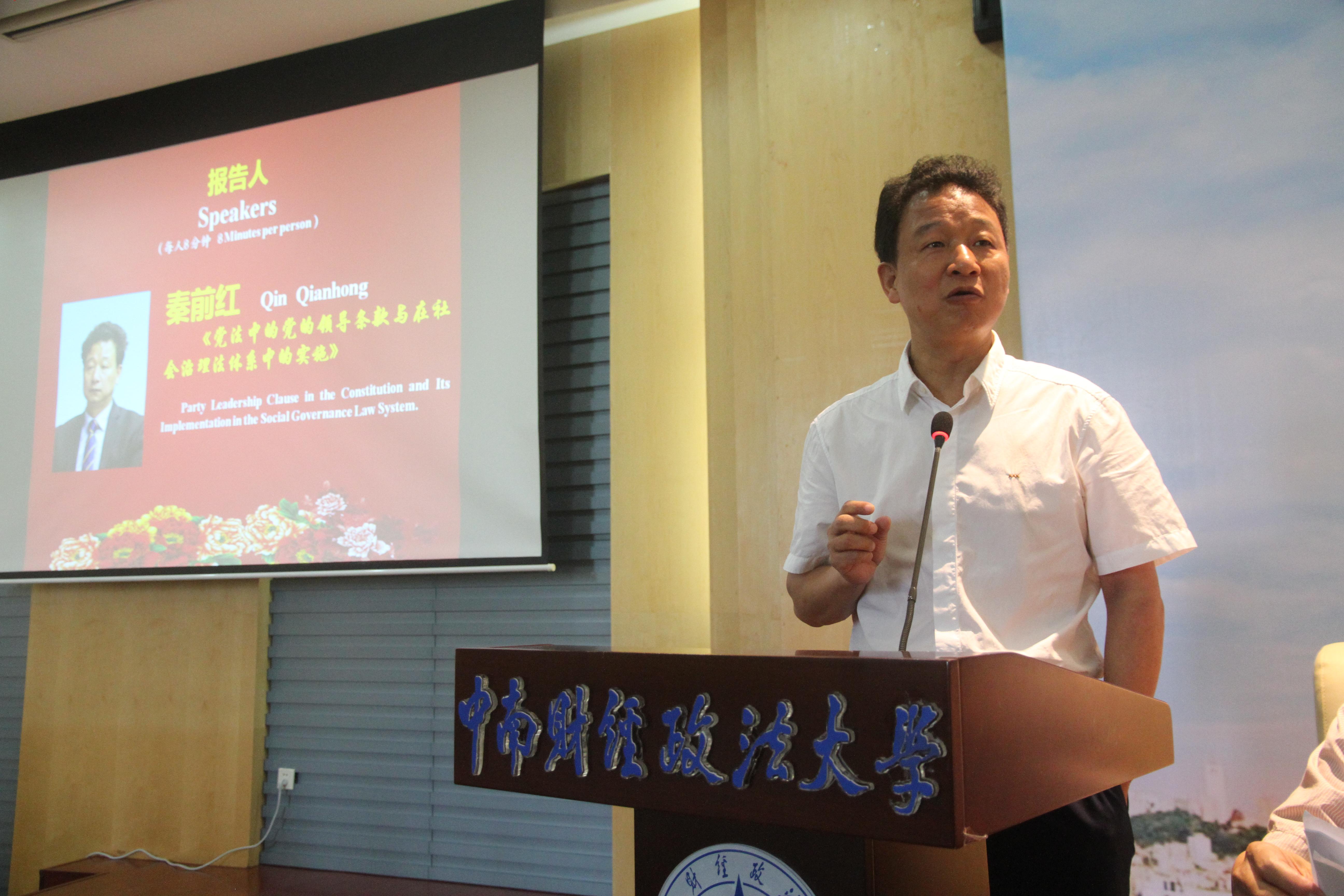 《法学评论》杂志社主编、武汉大学法学院秦前红教授认为法学工作者要注重研究和解决中国社会中的现实与重要问题,坚持党的领导是社会治理法学-三大体系-构建必须要求和遵循原则。