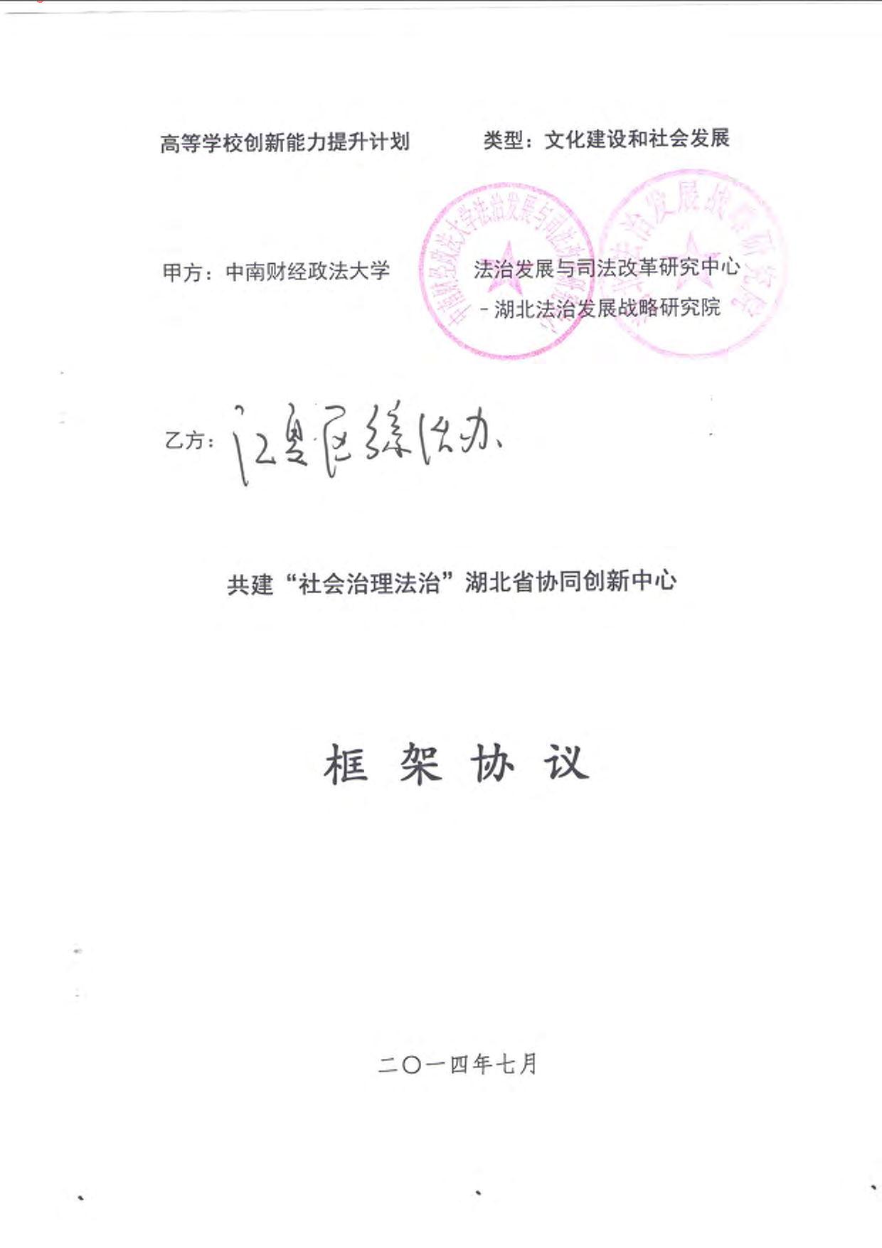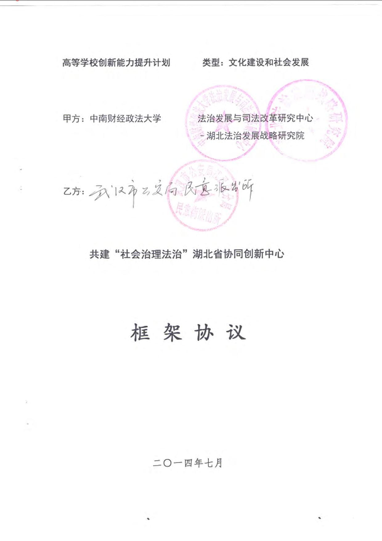 与武汉市共建“社会治理法治”湖北省协同创新中心