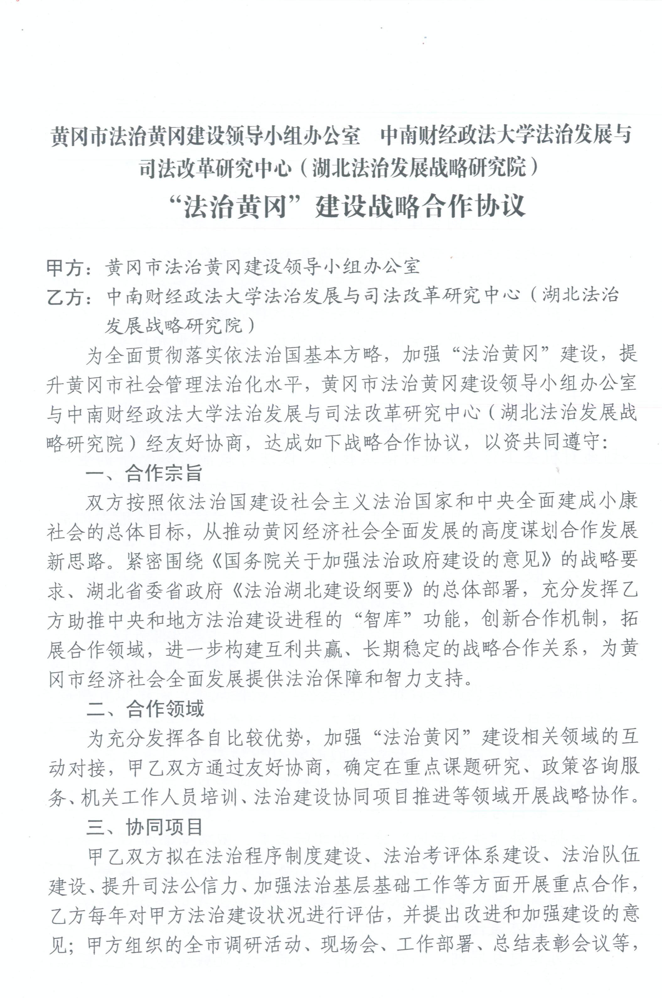 “法治黄冈”建设战略合作协议