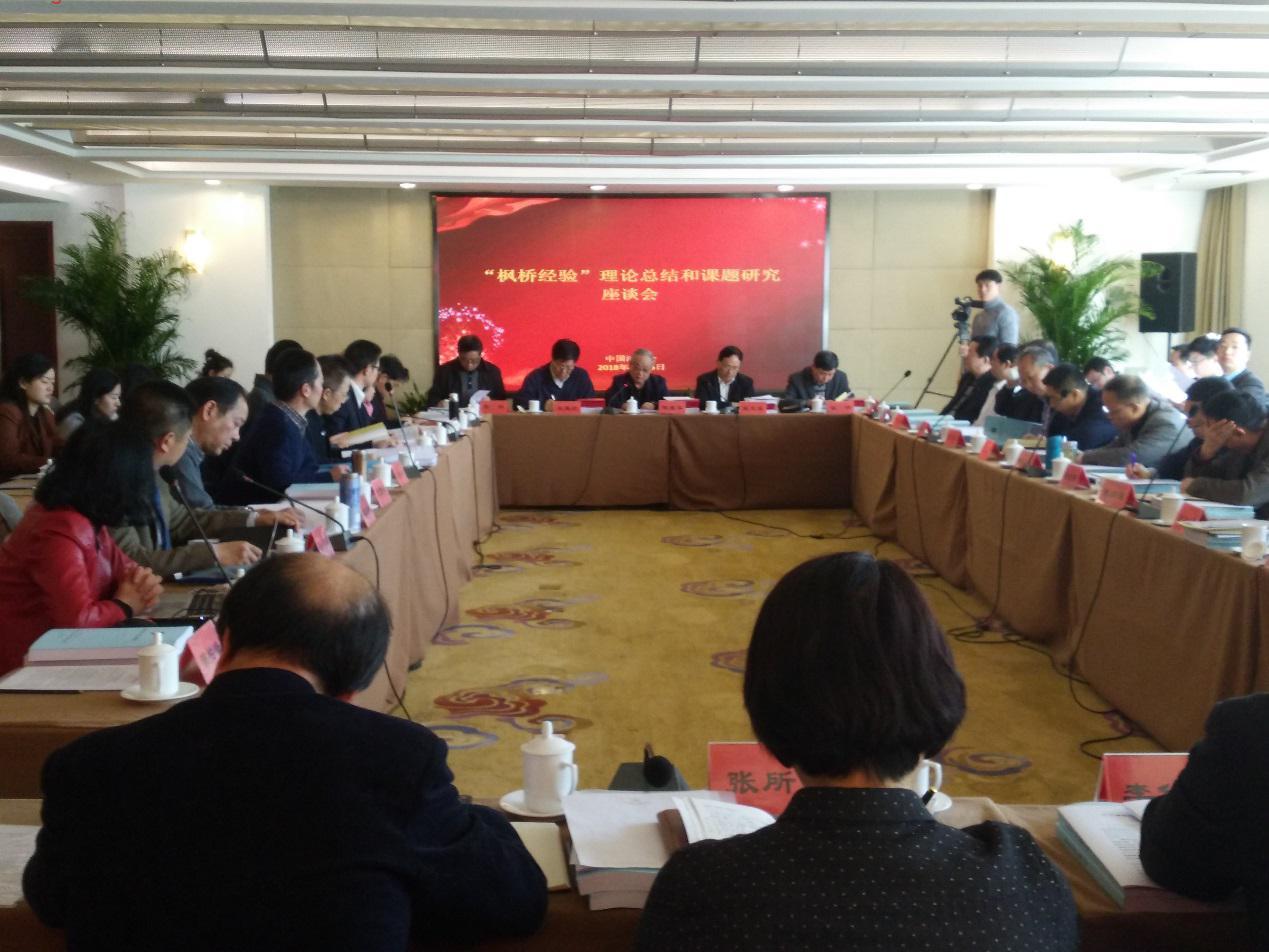 以纪念毛泽东同志批示学习推广“枫桥经验”55周年暨习近平同志指示坚持发展“枫桥经验”15周年为主题的“枫桥经验”理论总结和课题研究座谈会,由中国法学会于1月25日在京召开。