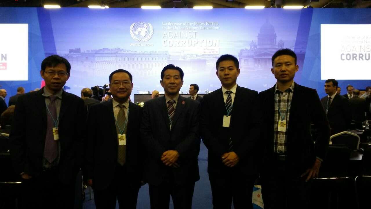 《联合国反腐败公约》第六届缔约国会议于11月2日至6日在俄罗斯圣彼得堡举行。中南财经政法大学法治发展与司法改革研究中心主任、湖北法治发展战略研究院院长徐汉明教授率领中南财经政法大学刑事司法学院董少平教授,中南财经政法大学博士生李少波、张新平一行4人出席会议。会议共有160多个国家以及10多个国际组织的代表参加。