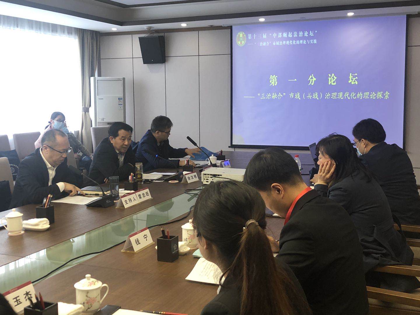 论坛开幕式、主旨报告后,第一分论坛的与会代表们围绕“三治融合”市域(县域)治理现代化的理论探索展开了深入研讨交流。徐汉明教授首先对国内法理学、法治评估学的知名专家张德淼教授撰写的《依法治国与国家治理体系能力现代化建设——以党的十九届四中全会精神为依据》的论文作了深度点评。他认为,张德淼教授学术专著居多,研究成果值得理论界、实务界关注。该文以依法治国与国家治理体系和治理能力现代化为题,对其内涵逻辑、时代意义、观念价值、问题原因、途径路径作了全面诠释,尤其是他从“四个维度”对法治能力标准作了结构性诠释,其许多经典观点、命题、概念丰富发展了这一重大理论体系,具有理论创新、实践创新、制度创新,是一篇不可多得的佳作。接着,徐汉明教授还聚焦国家治理体系和治理能力现代化研究的重大意义作了三点补充:一是对国家治理体系和治理能力现代化基本命题的研究有待进一步深化;二是加强对国家制度优势理论实践的研究;三是对当代中国制度演进的规律应当深入研究、牢牢把握。他希望与会专家学者对此问题作进一步探讨交流。