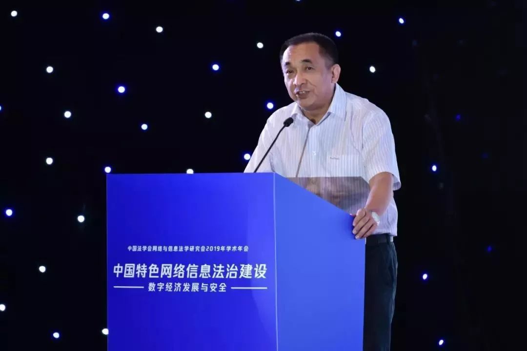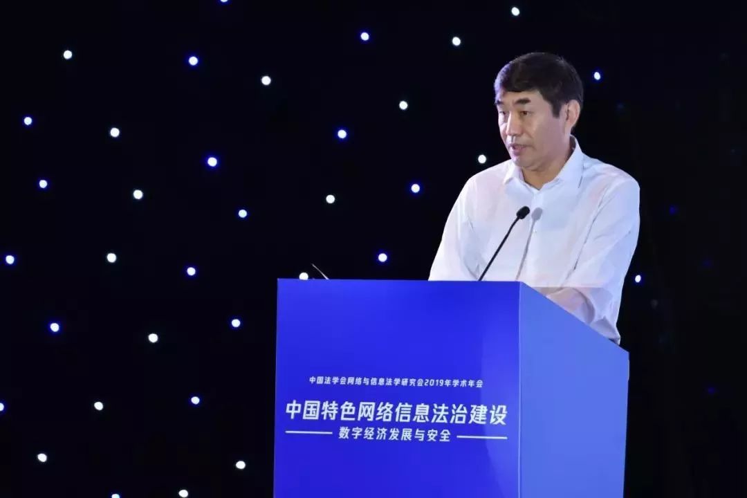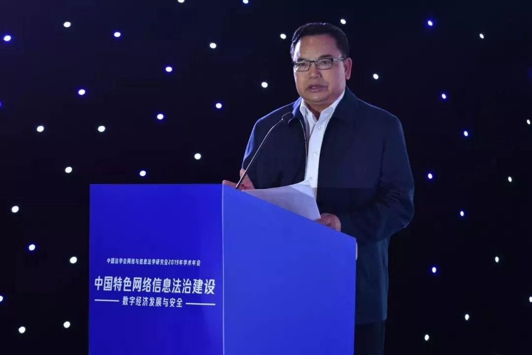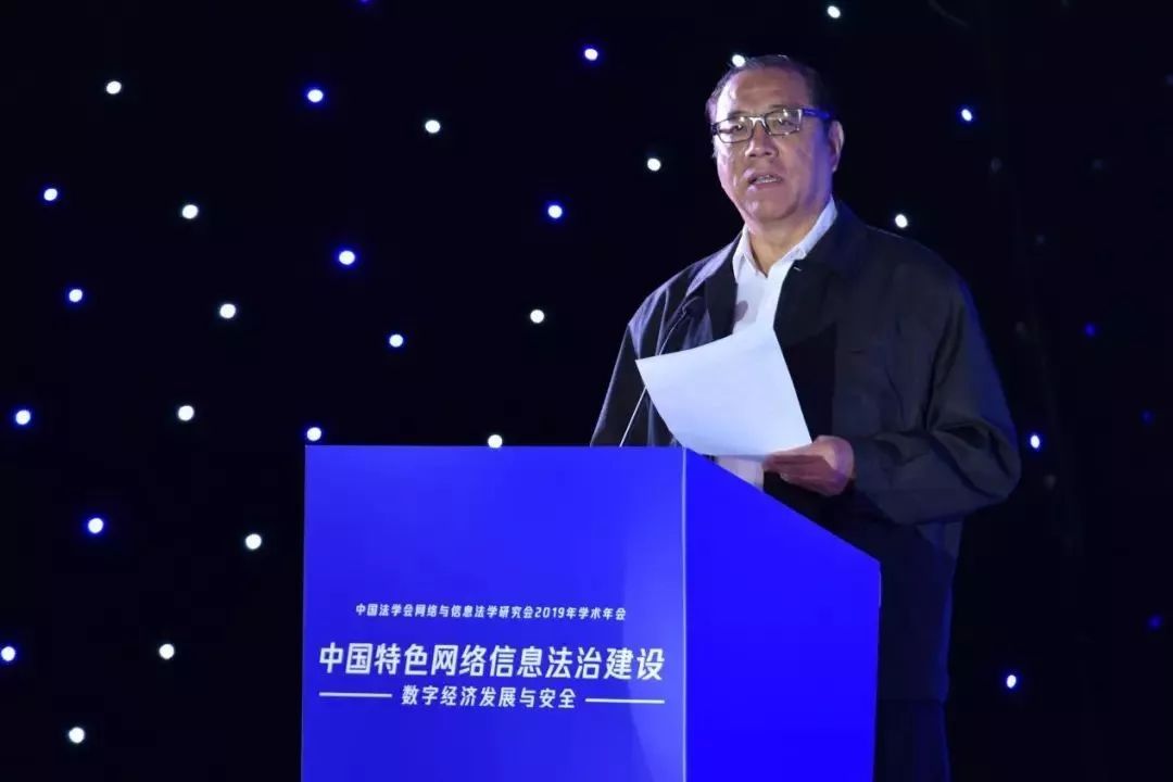 张苏军代表中国法学会对年会的召开表示热烈的祝贺。他指出:这是一个-法治兴-的时代。党的十八大以来,习近平总书记站在全局和战略高度,亲自谋划法治、布局法治、厉行法治,领导全国人民坚持法治国家、法治政府、法治社会一体建设,依法治国、依法执政、依法行政共同推进,取得了举世瞩目的成就,创造了人类法治文明建设史上的奇迹。这是一个-数字兴-的时代。以“习近平生态文明思想带领我们抓住数字时代的历史机遇,大力发展网络信息技术,让我们处在了世界数字科技和数字经济舞台的中央。在这个-法治兴-+-数字兴-的双重背景下,网络与信息法学研究会将本次年会主题确定为-中国特色网络信息法治建设--数字经济发展与安全-,具有非常重大的时代意义、理论意义和现实意义。张苏军对研究会工作提出三点要求。第一,研究会要深入贯彻落实习近平“习近平新时代中国特色社会主义思想和党的十九大精神,始终坚持网络信息法学研究正确的政治方向。研究会要深入学习贯彻习近平总书记在中央全面深化改革委员会第九次会议和全国网络安全和信息化工作会议上的重要讲话精神,把思想和行动统一到党中央关于网信工作的战略部署上来,推动研究会各项工作再上新台阶。第二,研究会要不断推进理论创新和实践创新,为建设中国特色网络信息法治体系提供新思路、新活力。研究会要深入学习、准确把握网络强国战略的核心思想和精神,进一步加强网络信息法治体系研究,对如何建立完备的网络信息法律规范体系和如何形成高效的网络信息法治实施体系展开深入研讨,并加强研究会的智库建设,充分发挥研究会作为-国家队-的智库功能,为中央决策和为网络强国战略的实施提供强有力的智力支撑。第三,研究会要重视数字经济发展带来的信息安全隐患,树立正确的网络安全观,为我国数字经济的蓬勃发展提供坚实的法治引领和保障。研究会要积极探索网络信息安全的规则建设,对如何加强网络安全事件应急指挥能力、建设网络安全信息统筹机制展开深入研讨,争取做到关口前移,防患于未然,研究会也应在提升全民网络安全意识方面发挥更重要的作用。