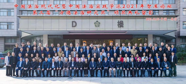中国法治现代化暨中国法治实践学派2021年智库论坛·第三届-方德法治研究奖-颁奖典礼于10月23日在南京举办,本次论坛的主题为-马克思主义法治理论中国化的百年进程-。来自国内政法机关、高等院校、科研机构的100余位专家学者出席论坛。