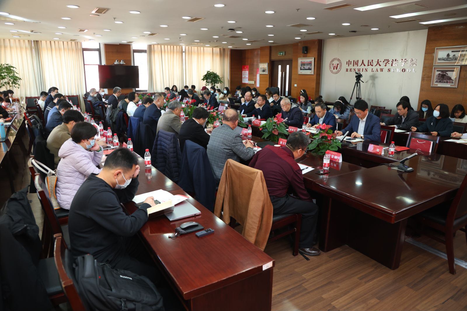 本次学术研讨会由中国人民大学法学院、中国人民大学习近平“习近平新时代中国特色社会主义思想研究院主办,中国人民大学习近平法治思想研究中心承办。中国人民大学副校长王轶教授,司法部法治调研局副局长、一级巡视员姜海涛,中国人民大学习近平“习近平新时代中国特色社会主义思想研究院院长秦宣教授致辞。中国法学会党组成员、学术委员会主任、吉林大学哲学社会科学资深教授张文显,中国法学会副会长、中国法理学研究会名誉会长、教育部法学教学指导委员会主任委员徐显明,第十四届全国人民代表大会常务委员会委员、环境与资源保护委员会副主任委员、中国法学会环境资源法学研究会会长吕忠梅教授,中国法学会副会 长、中国法学会民法学研究会会长、中国人民大学法学院王利明教授分别作主旨发言。中南财经政法大学法学院、国家治理学院院长陈柏峰教授,中南财经政法大学法学院张德淼教授线上参会并分别作《中国式法治现代化的中国特色》《国家治理现代化的法治评估标准及其应用》主题发言。中国人民大学法学院党委书记杜焕芳教授代表中国人民大学法学院院长黄文艺教授主持本次学术研讨会。据悉,本次会议也是中国人民大学习近平法治思想研究中心主任冯玉军教授主持2022年度国家社科基金重大项目-习近平法治思想的原创性贡献研究-的开题报告会。