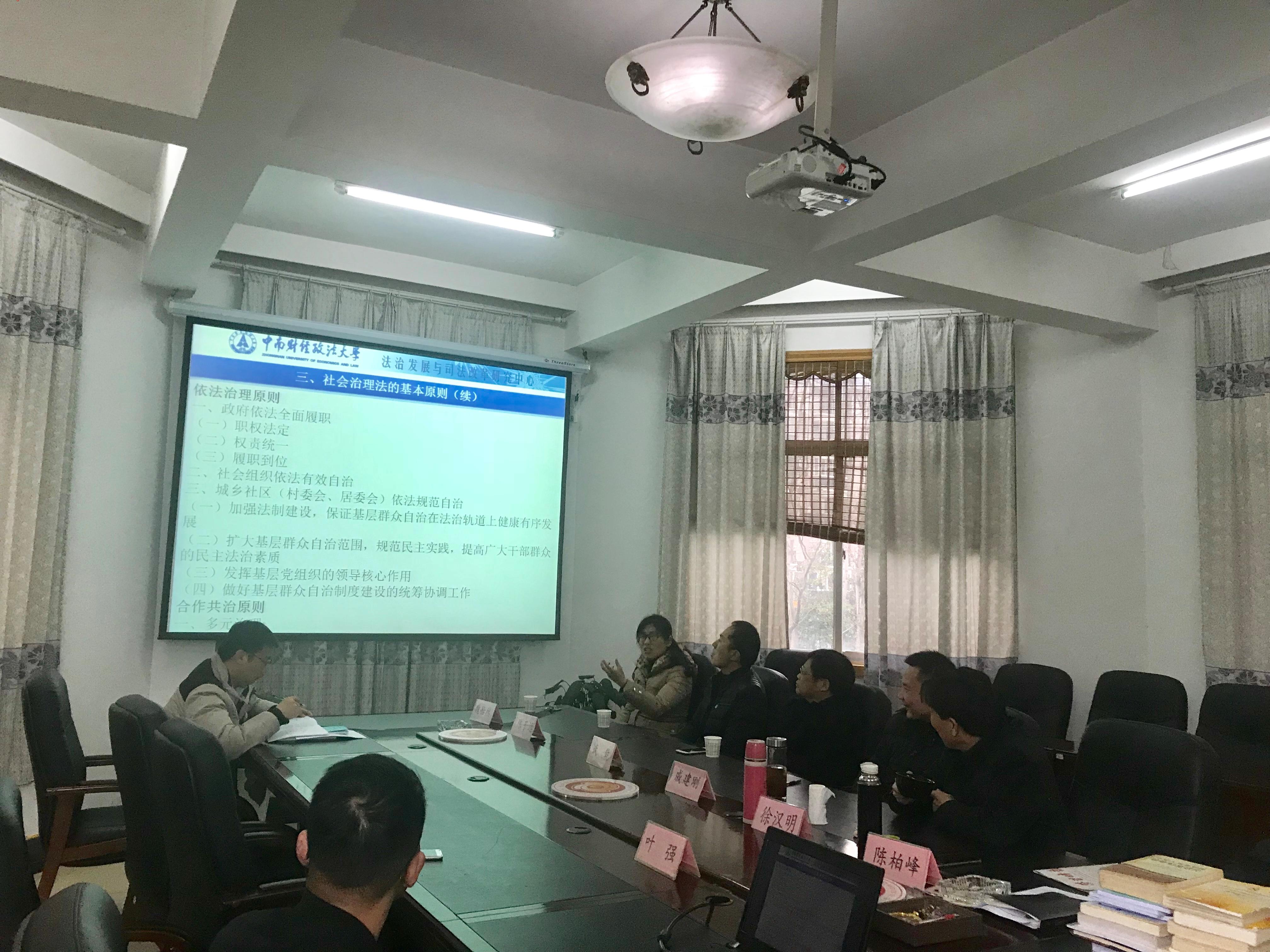 3月6日下午,在中南财经政法大学法治发展与司法改革研究中心二楼会议室,由承担教学任务的法学博士后叶强老师对社会治理法学原论进行试讲。试讲由徐汉明教授主持,陈柏峰教授、戚建刚教授、武乾教授、陈子远老师、魏怡然老师出席。