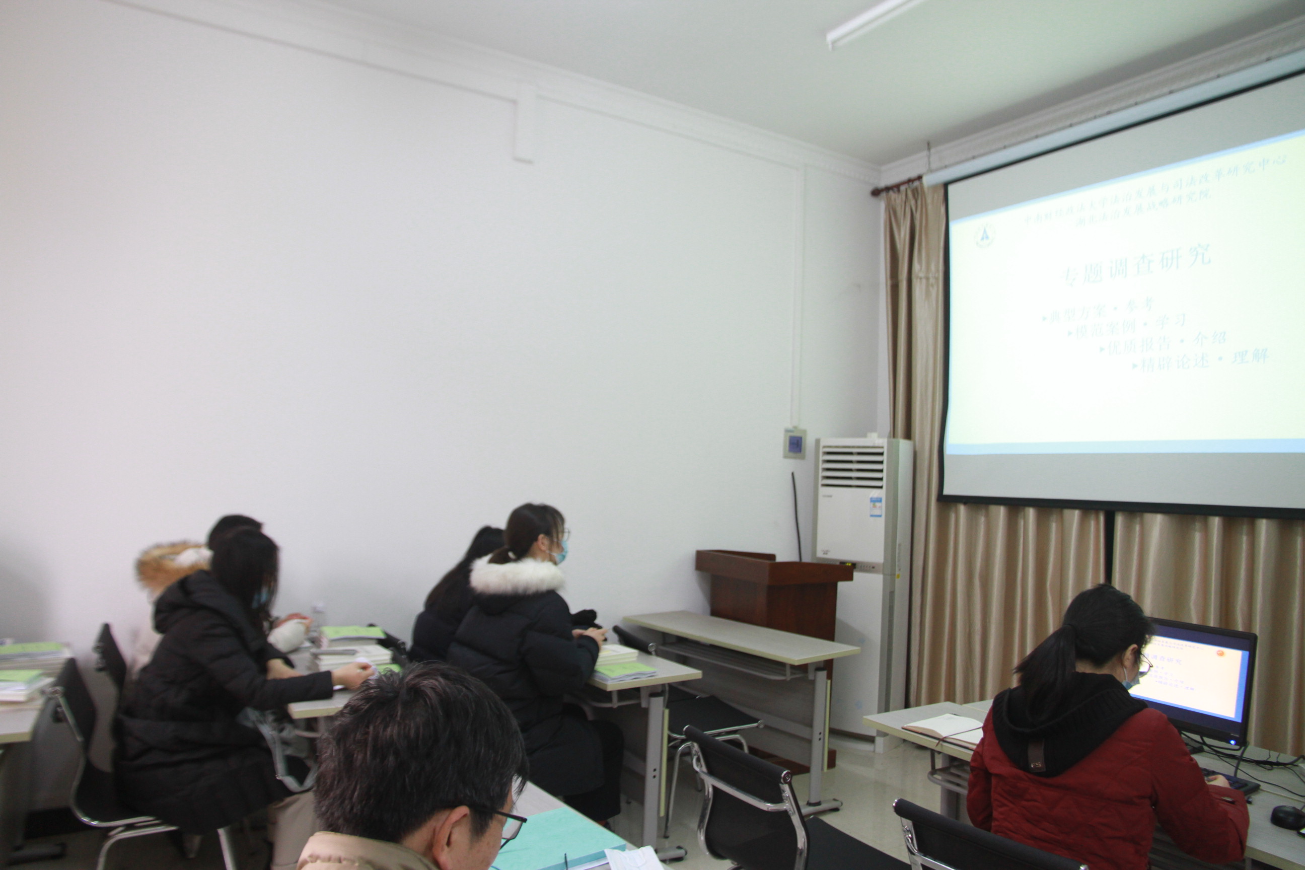 (通讯员 王丽聪)12月11日下午,在中南财经政法大学法治发展与司法改革研究中心暨湖北法治发展战略研究院(以下简称“中心-研究院”)的一楼教室,中心-研究院副院长、首席研究员杜建国为2020级社会治理法学专业硕士生讲授了如何组织和参与专题调查研究。本次培训的目的一是让同学们从观念上认识到专题调查研究的重要性;二是指导同学们学会从社会生活中实化调查研究的对象并科学系统地开展研究分析。