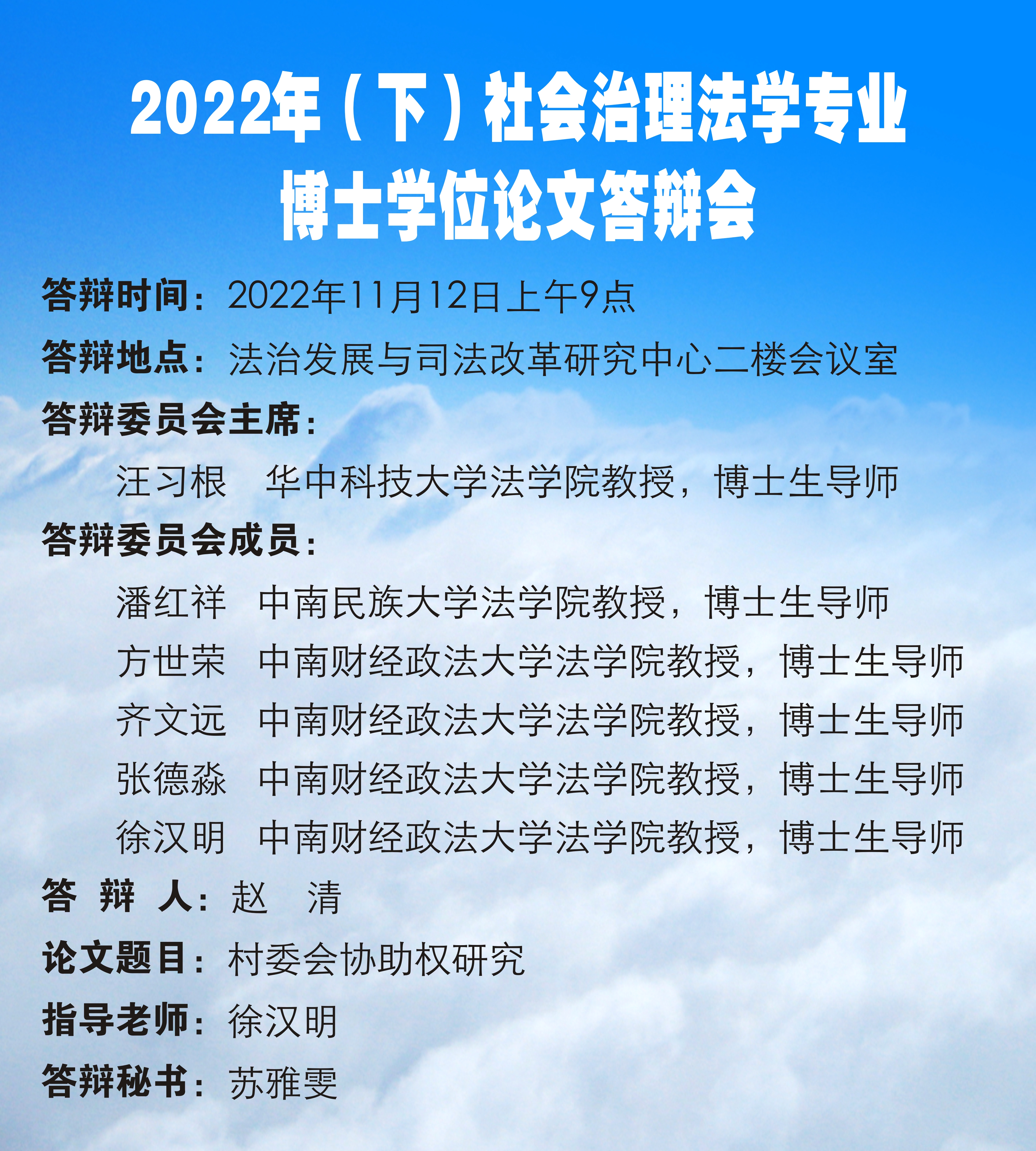社会治理法学专业2022年(下)博士学位论文答辩报告会