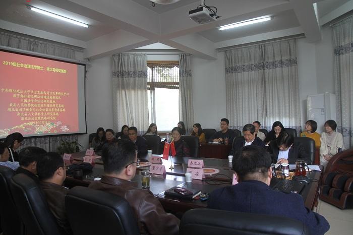 (通讯员 张倩) 9月19日上午,社会治理法学专业2019级新生见面会在中南财经政法大学法治发展与司法改革研究中心暨湖北法治发展战略研究院(以下简称“中心-研究院”)举行。中南财经政法大学副校长、博士生导师姚莉教授,人才办主任、硕士生导师陈柏峰教授,博士生导师齐文远教授,博士生导师赵丽江教授,博士生导师董少平教授,硕士生导师周凌副教授,硕士生导师武乾副教授,硕士生导师魏怡然讲师,硕士生导师叶强讲师参加了见面会。会议由中南财经政法大学法治发展与司法改革研究中心主任、社会治理法学专业博士生导师组组长、“教育部社会治理法治建设创新团队”学术带头人徐汉明教授主持。