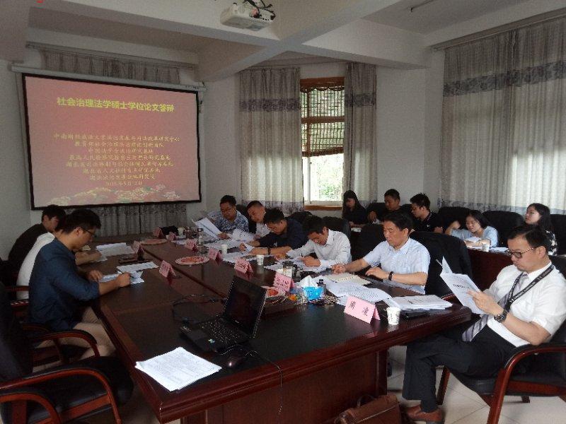 (通讯员:许燕子、尹延威)5月12日上午,社会治理法学专业首届硕士学位论文答辩在中南财经政法大学法治发展与司法改革研究中心二楼会议室举行。华中科技大学郭亮副教授担任答辩委员会主席,答辩委员会委员由社会治理法学专业硕士生导师徐汉明教授、陈柏峰教授、戚建刚教授、董少平教授、武乾副教授、周凌副教授组成。