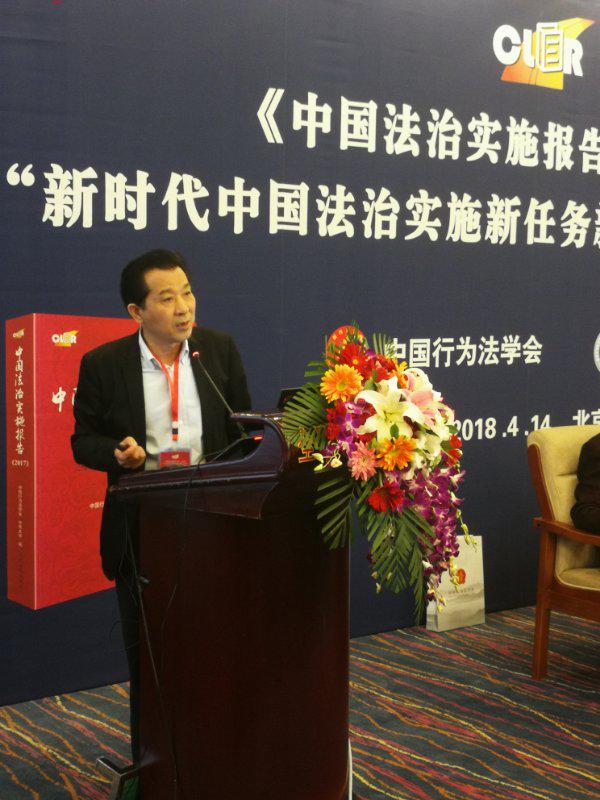 中国行为法学会长、中国法治实施报告主编江必新同志指出,党的十八大以来,中国法治建设进入了全面依法治国的新阶段,法治建设的重心从社会主义法律体系的建立向全面加强法治实施转移。五年来,中国法治建设取得了举世瞩目的进步,执法、司法、守法各方面发生了实质性的重大进展,法治中国整体质量水平全面提升,真正迈入了法治事业的升级阶段,《中国法治实施报告》项目在记录中国法治进程的过程中也迅速成长。他强调:《中国法治实施报告》要在全面、客观、准确记录法治进程上再下功夫,在整理提炼法治实施经验、发掘总结法律实施规律上再下功夫,在萃取升华法治实施理论内核、探索应用理论来分析研判法治实践上再下功夫,在为法治中国建设集结智慧、为深化法治实施建言献策上再下功夫,为新时代的中国法治持续提供高质量的-编年史-和-建言书-。