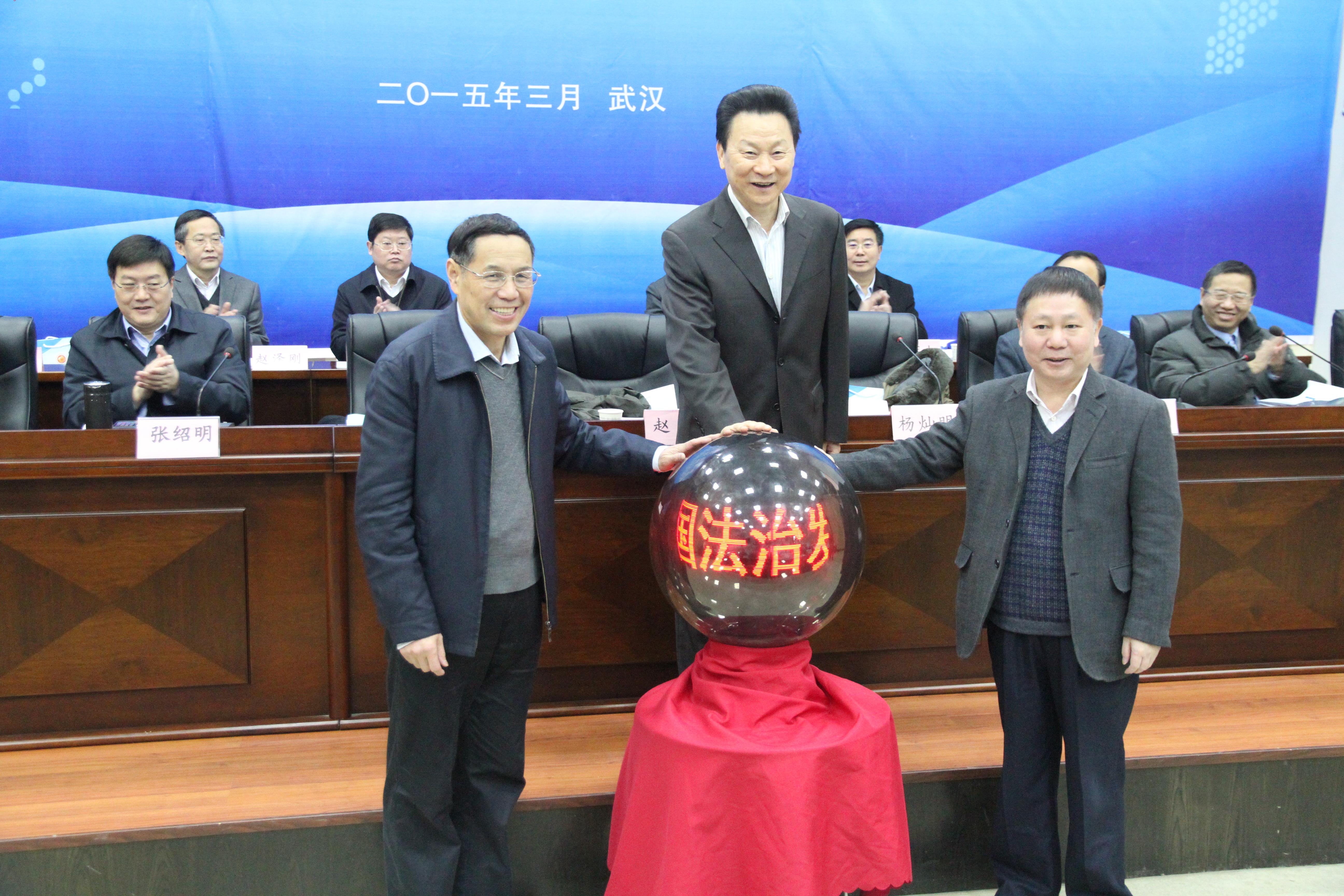 由湖北省人大常委会副主任赵斌、中南财经政法大学校长杨灿明、湖北法治发展战略研究院学术委员会主席吴汉东共同开启了LED电子显示球,标志着中国法治发展战略研究网的正式开通。