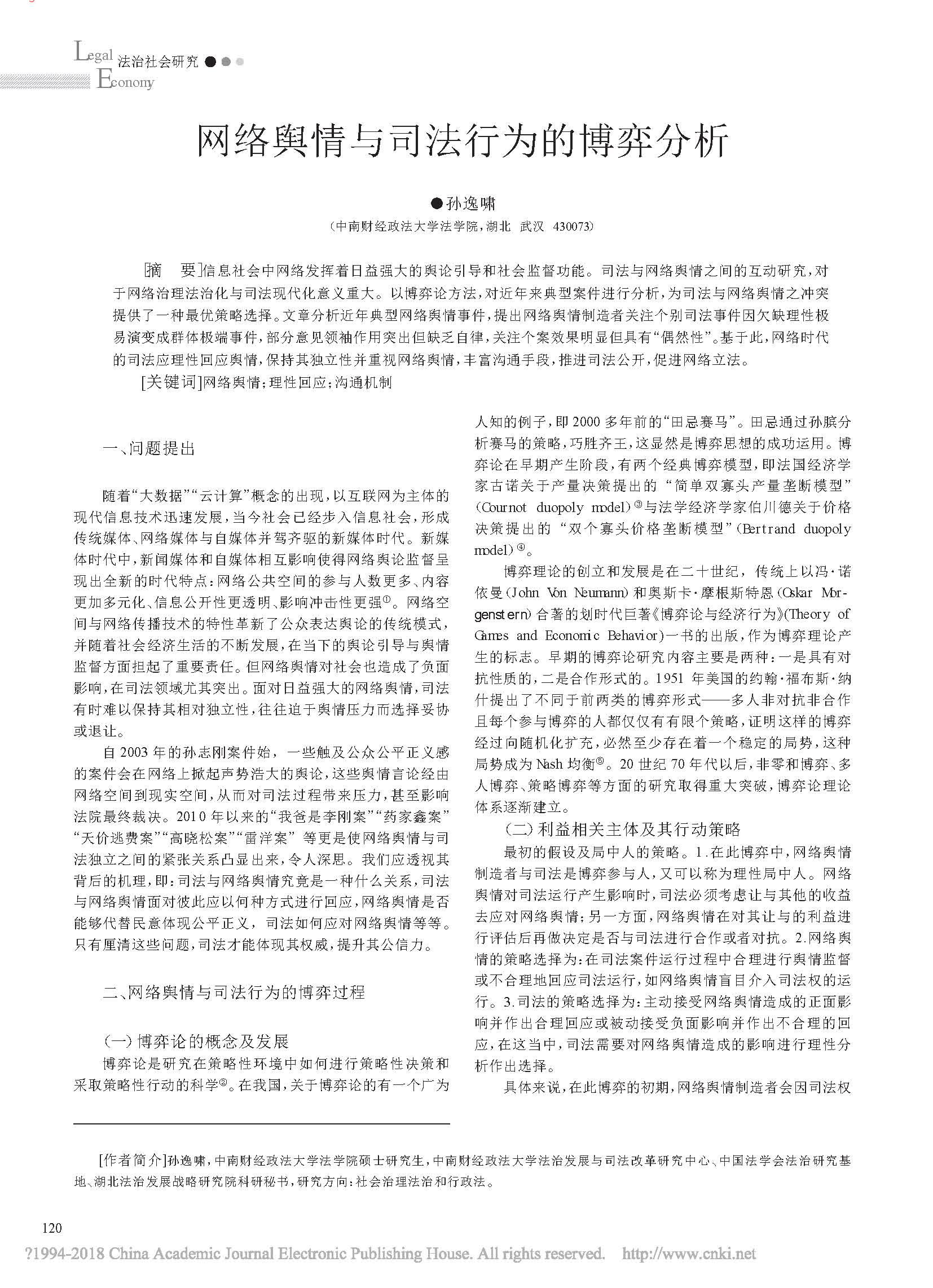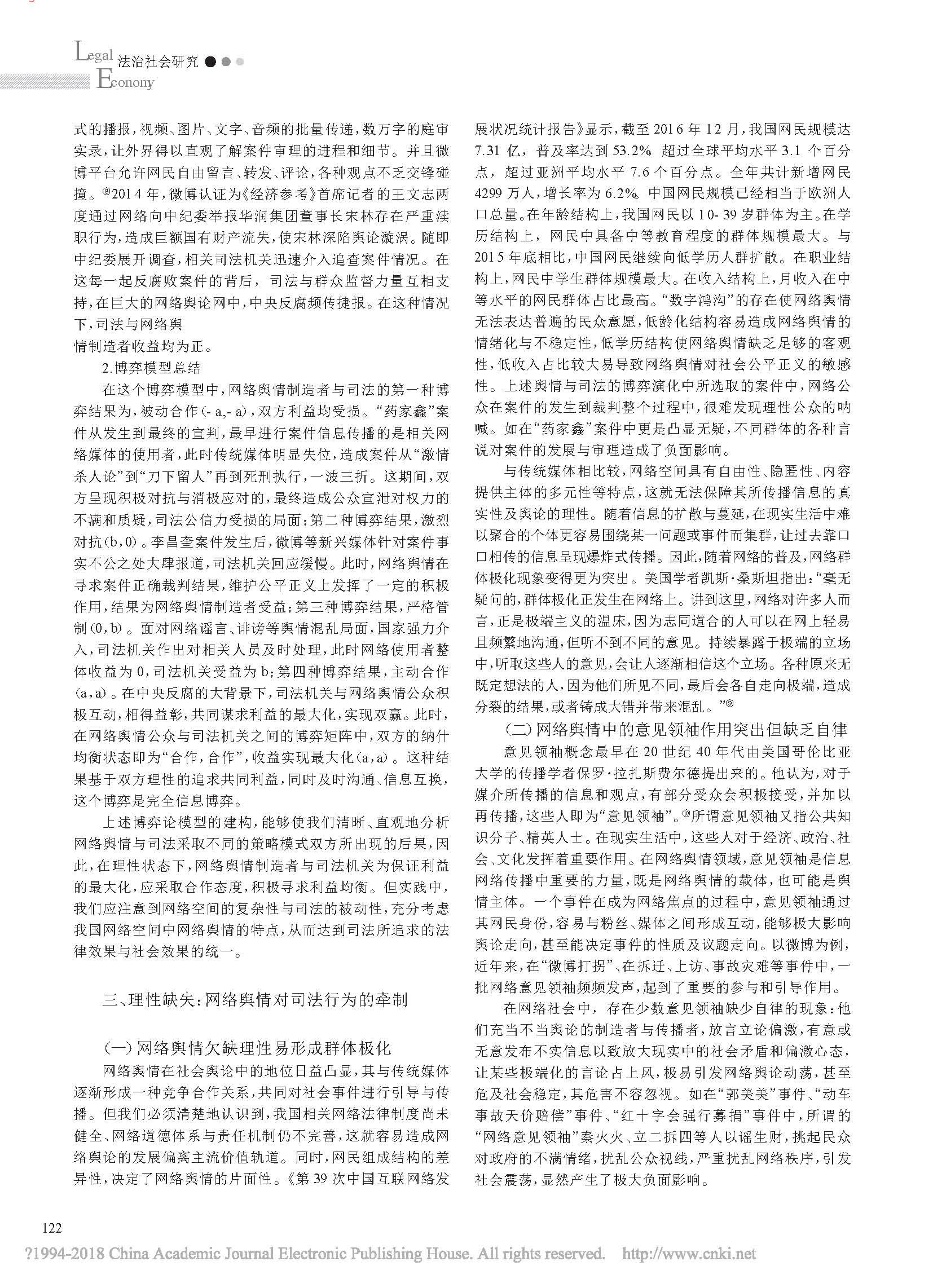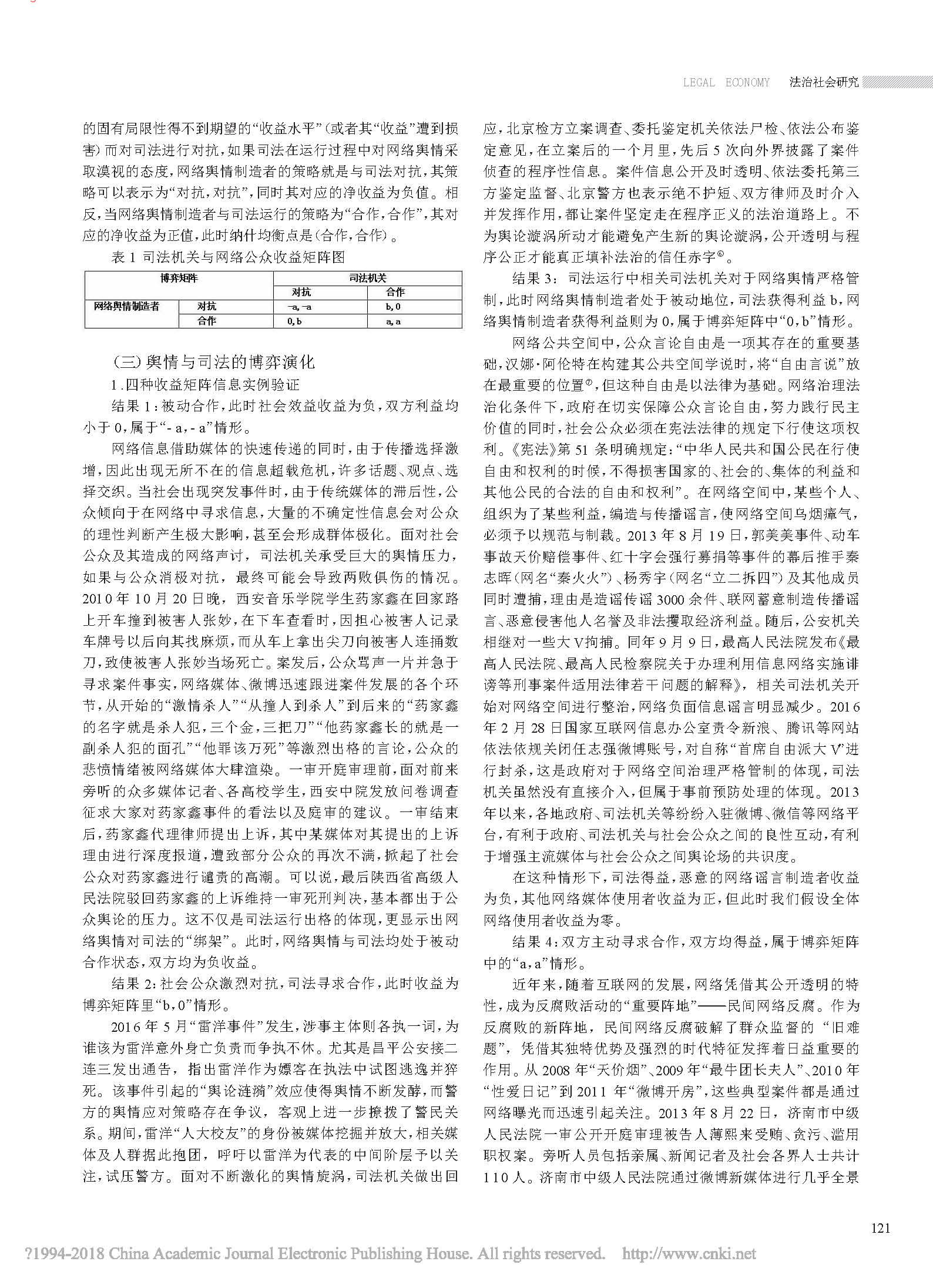 网络舆情与司法行为的博弈分析