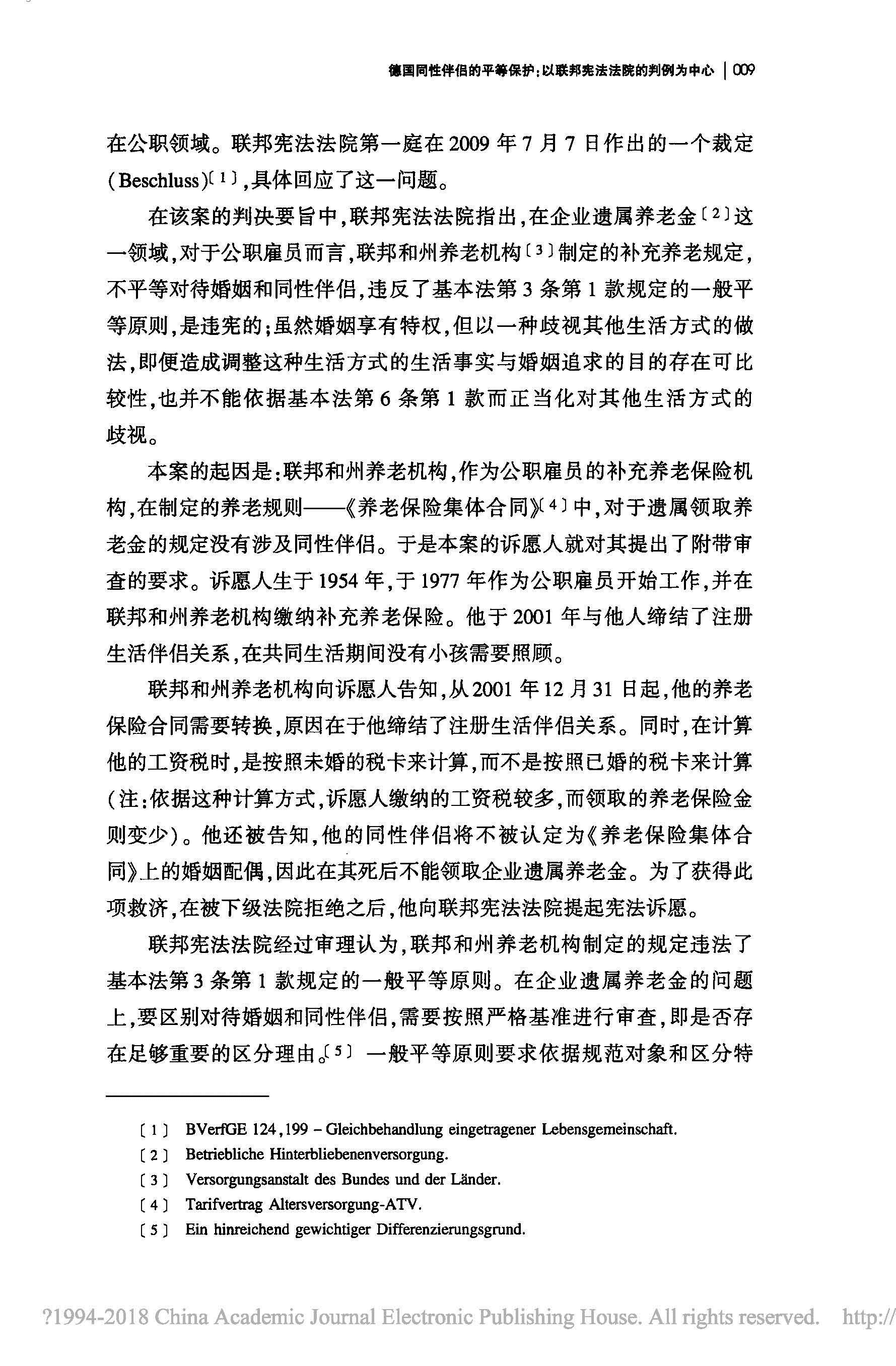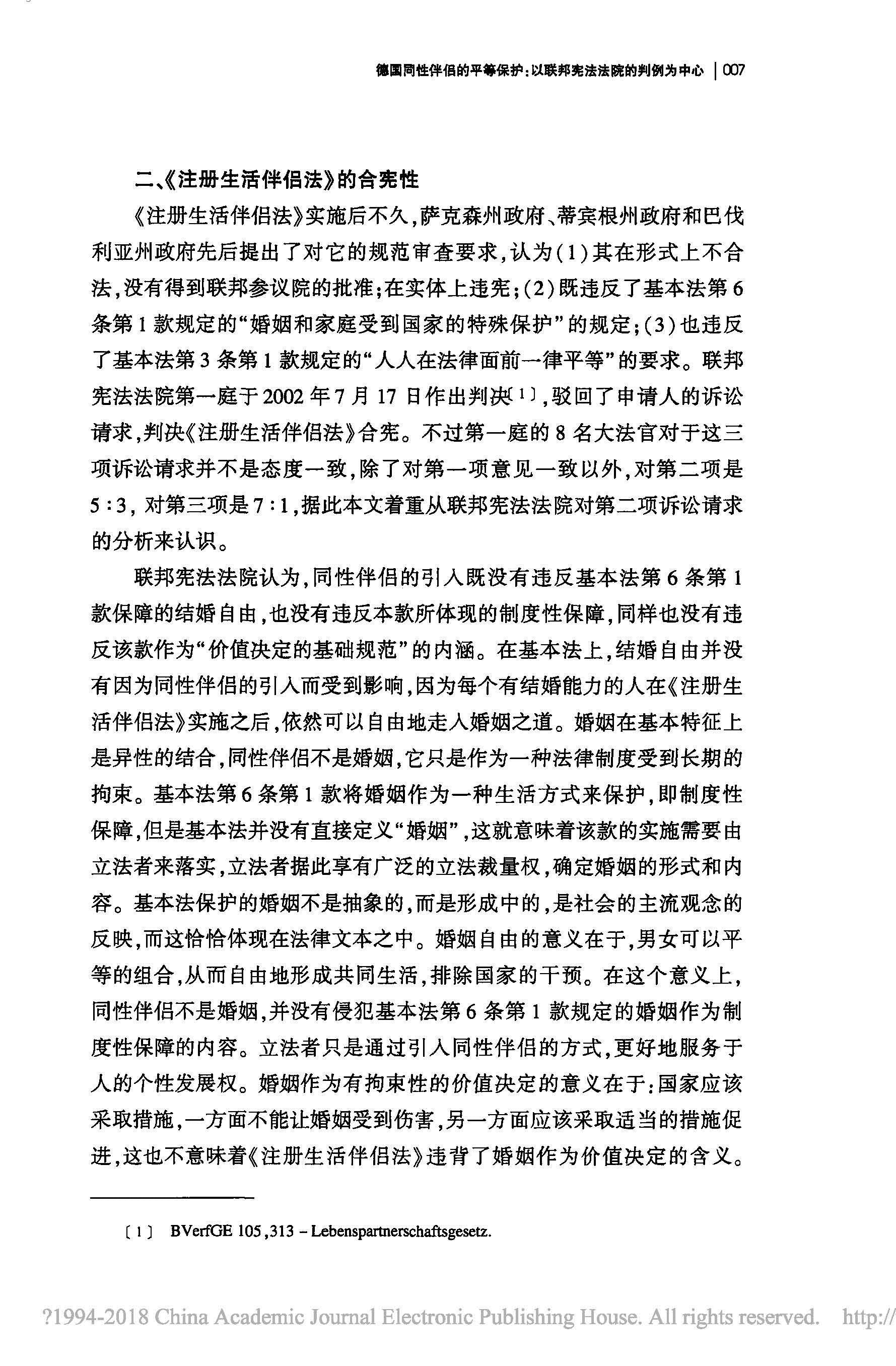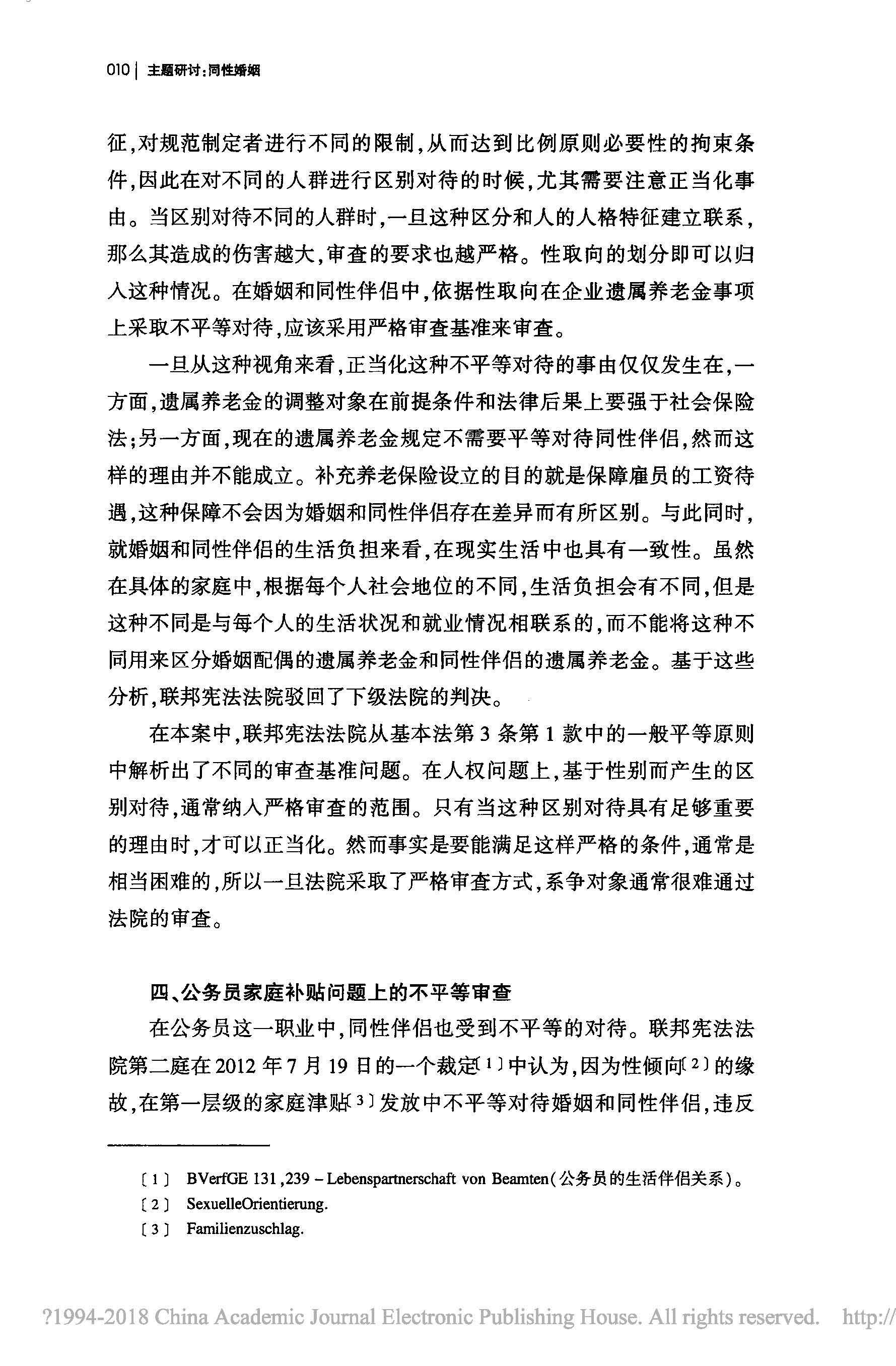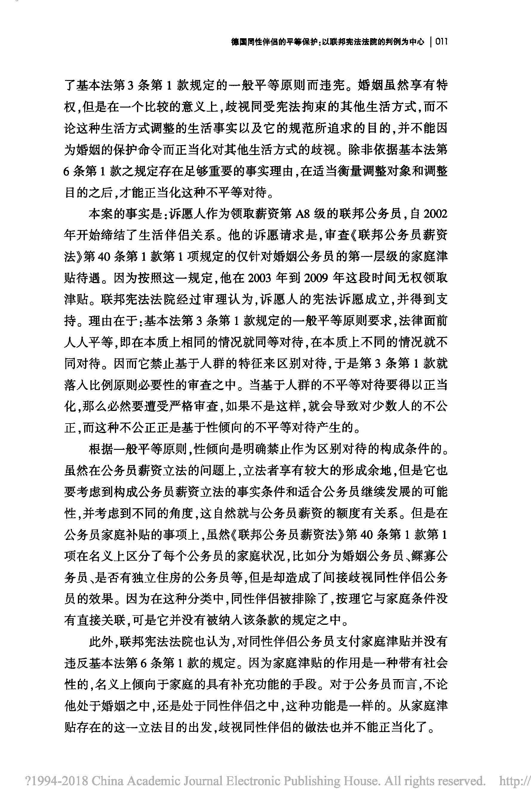 德国同性伴侣的平等保护:以联邦宪法法院的判例为中心