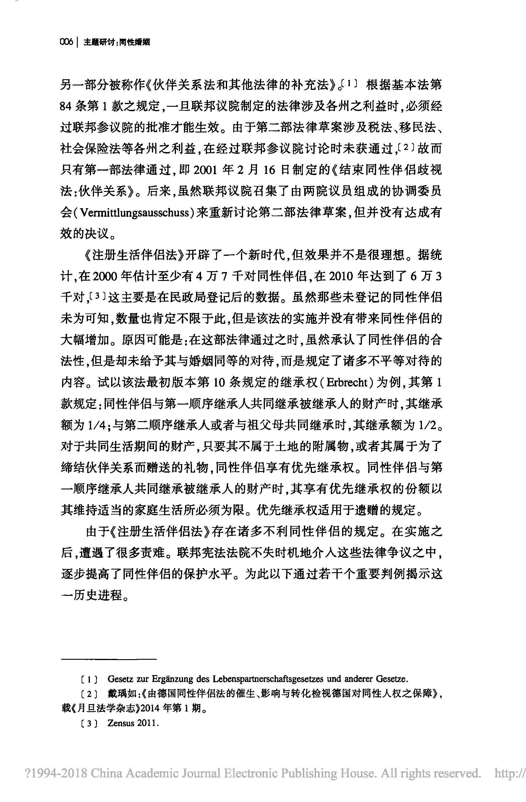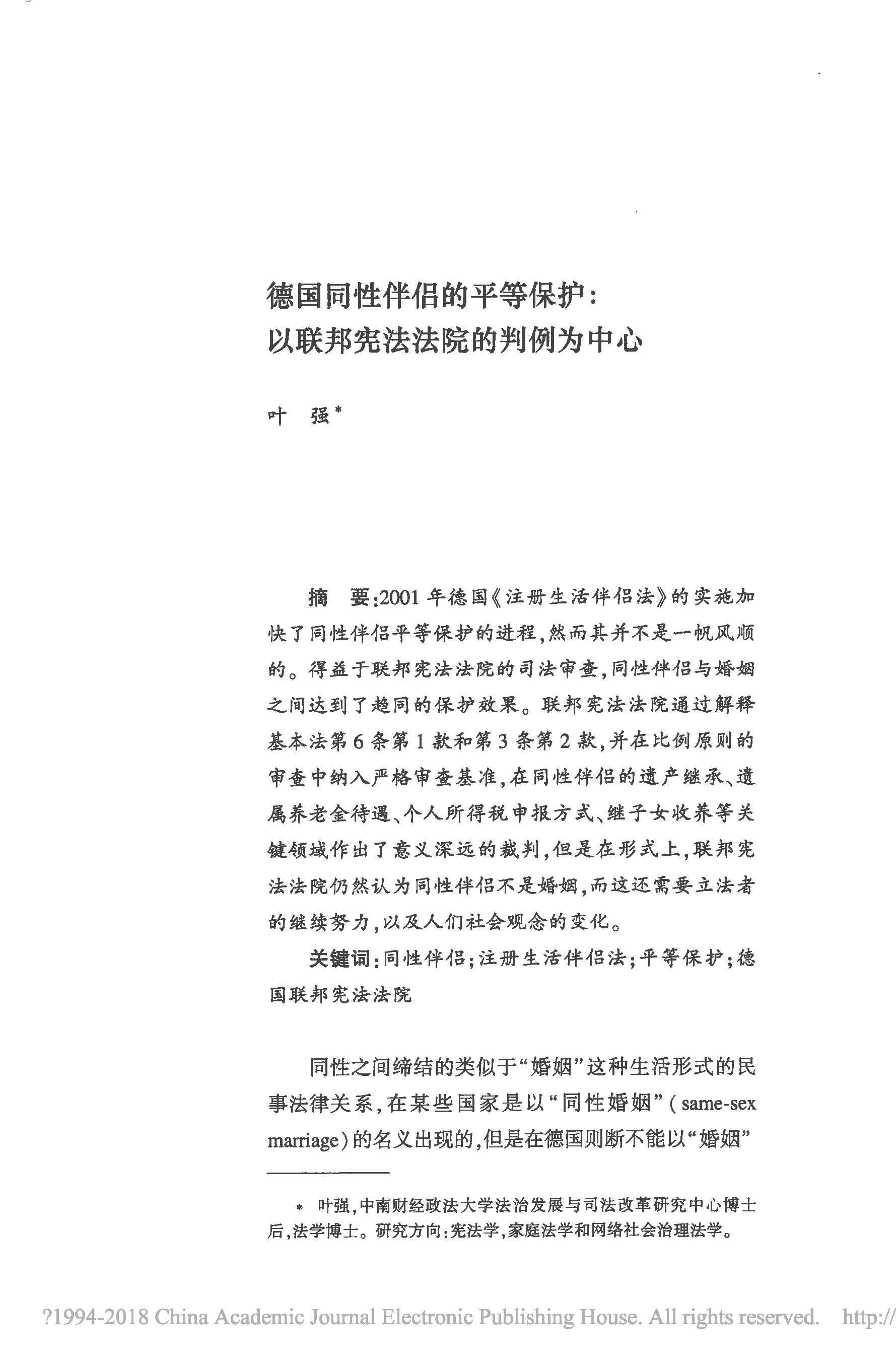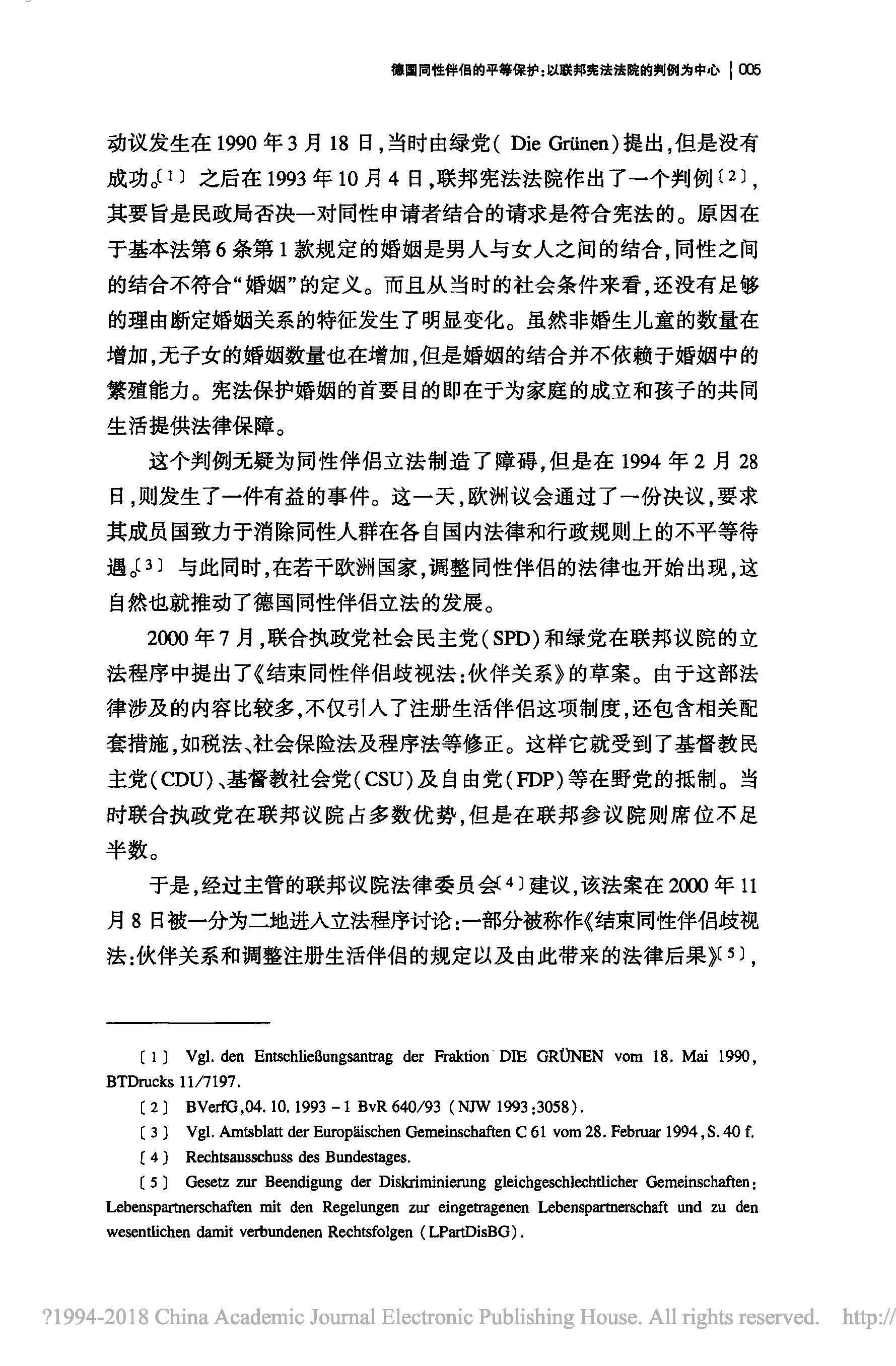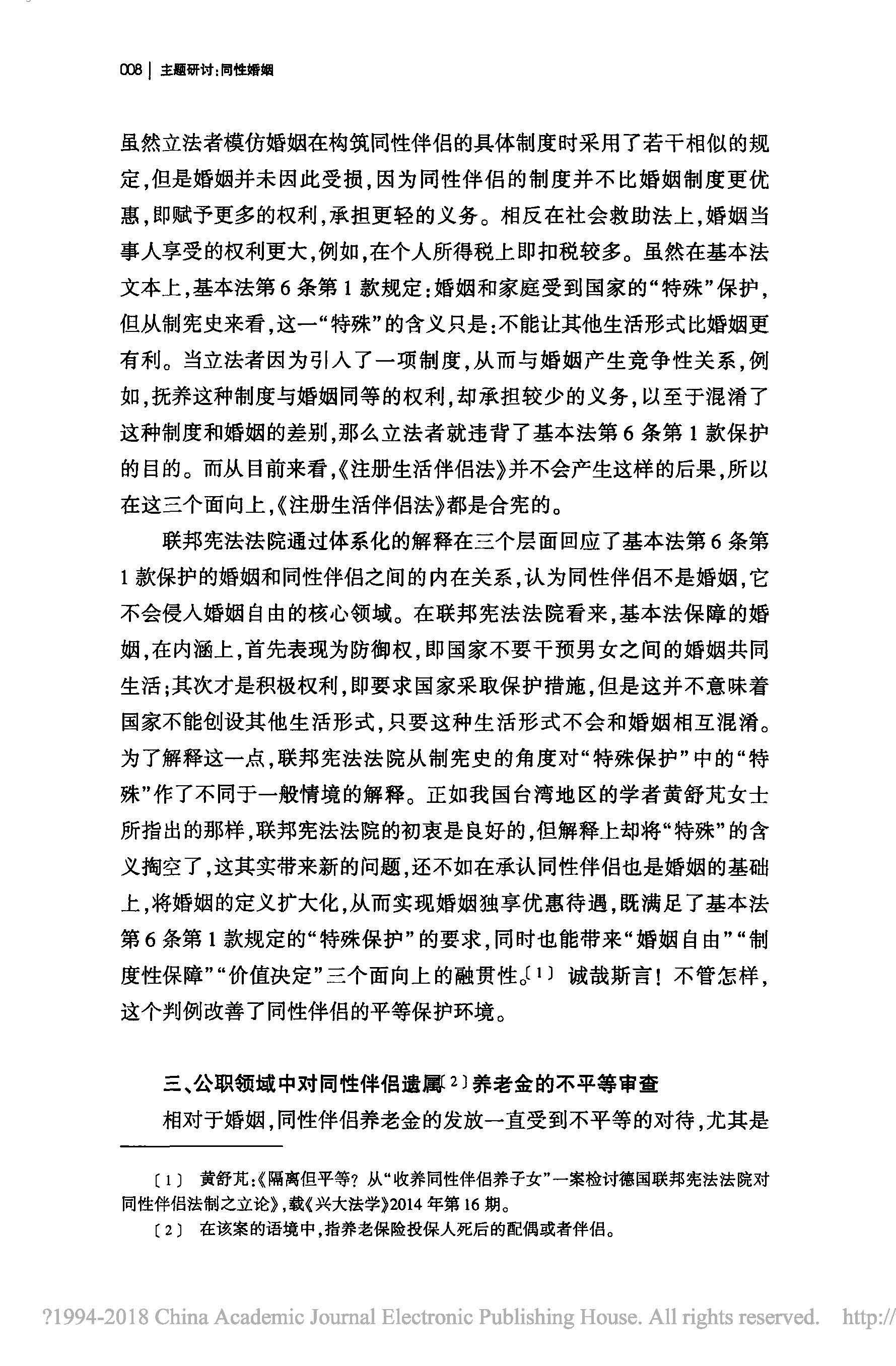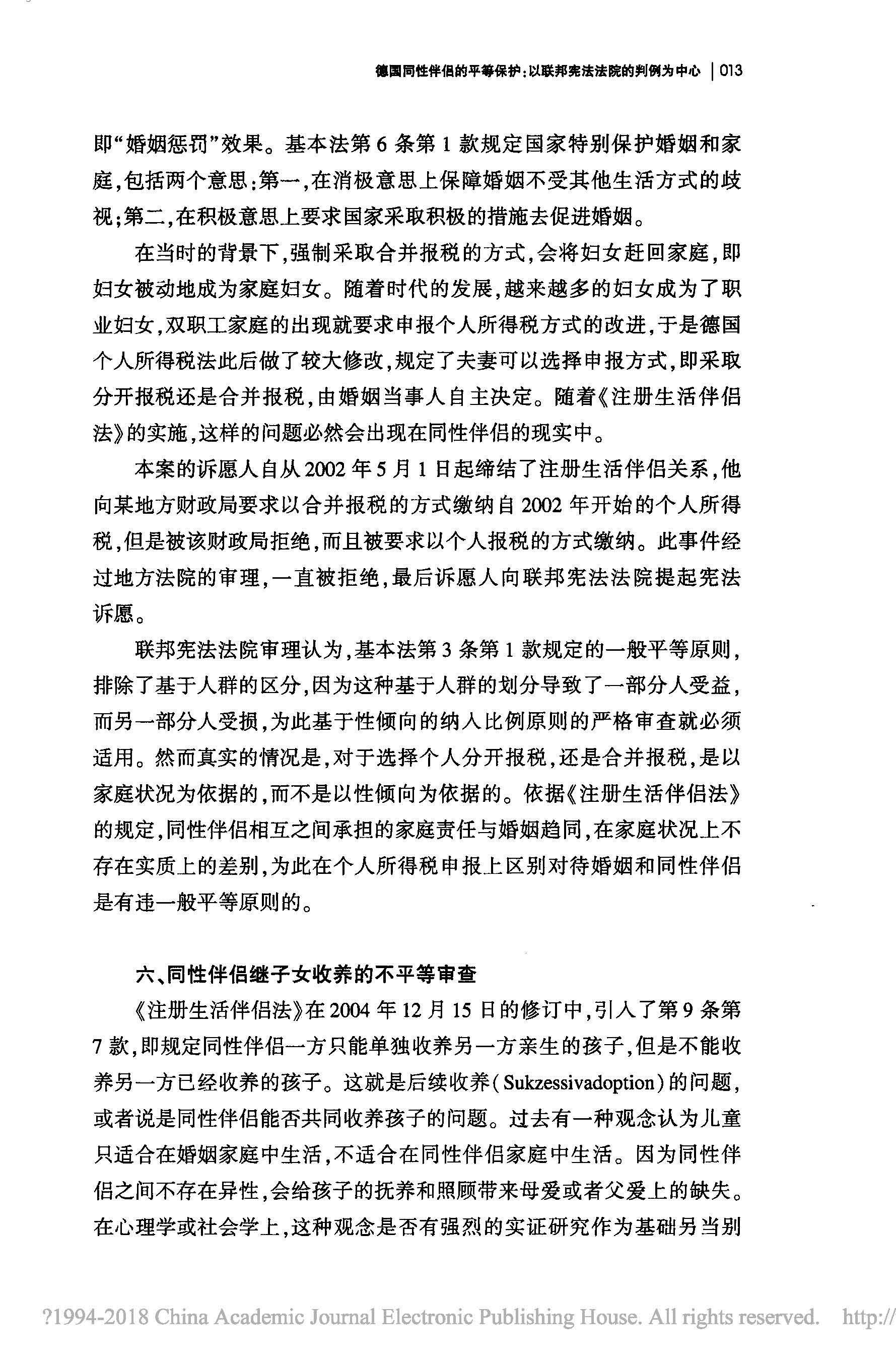德国同性伴侣的平等保护:以联邦宪法法院的判例为中心