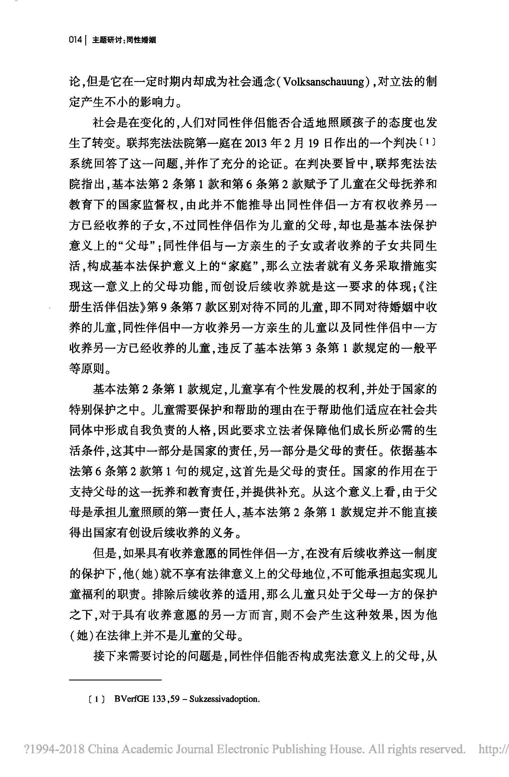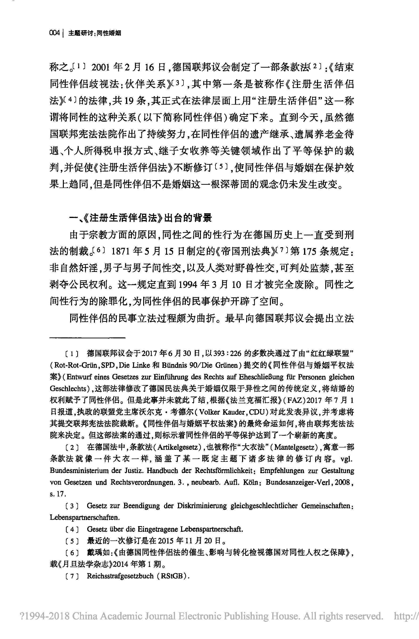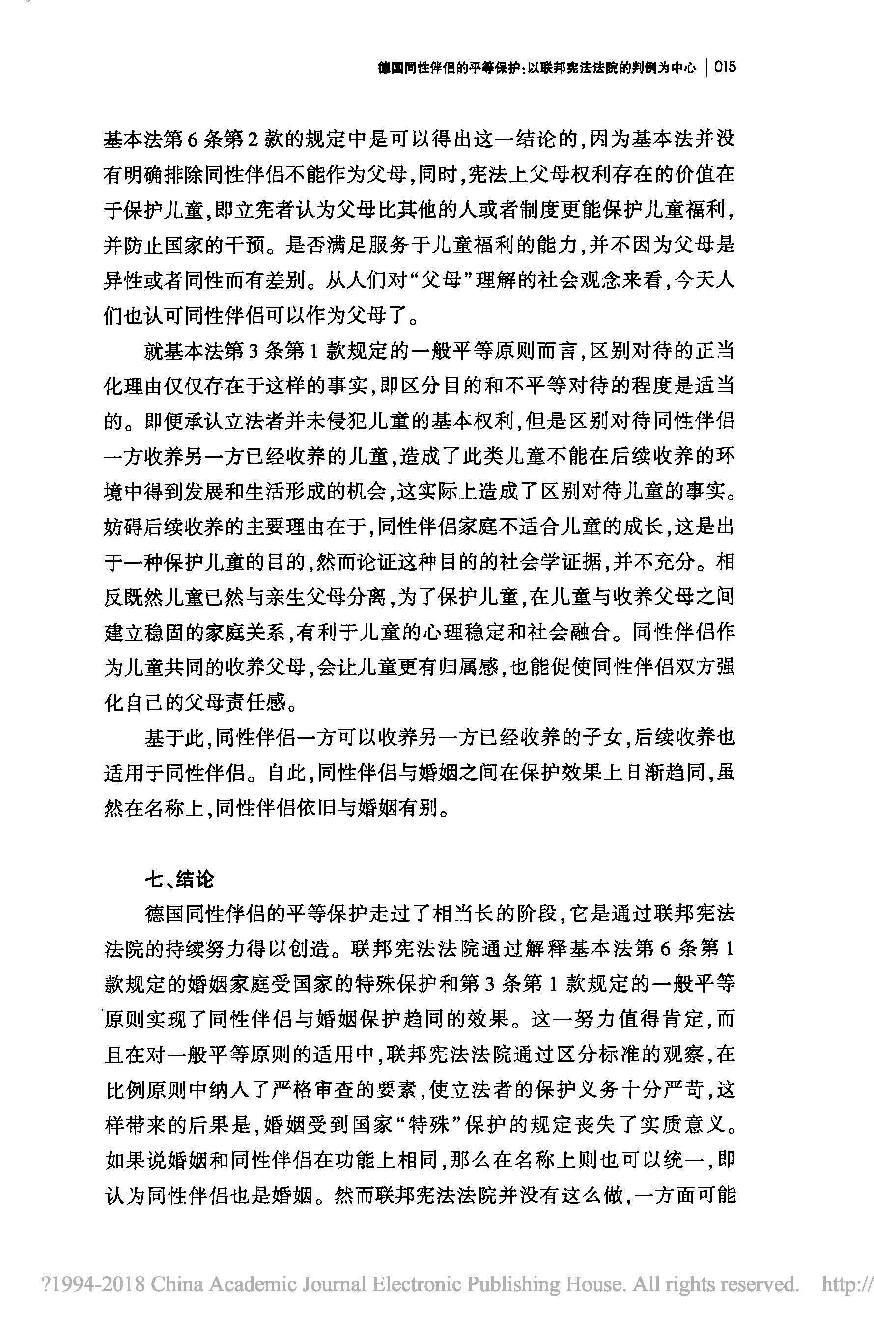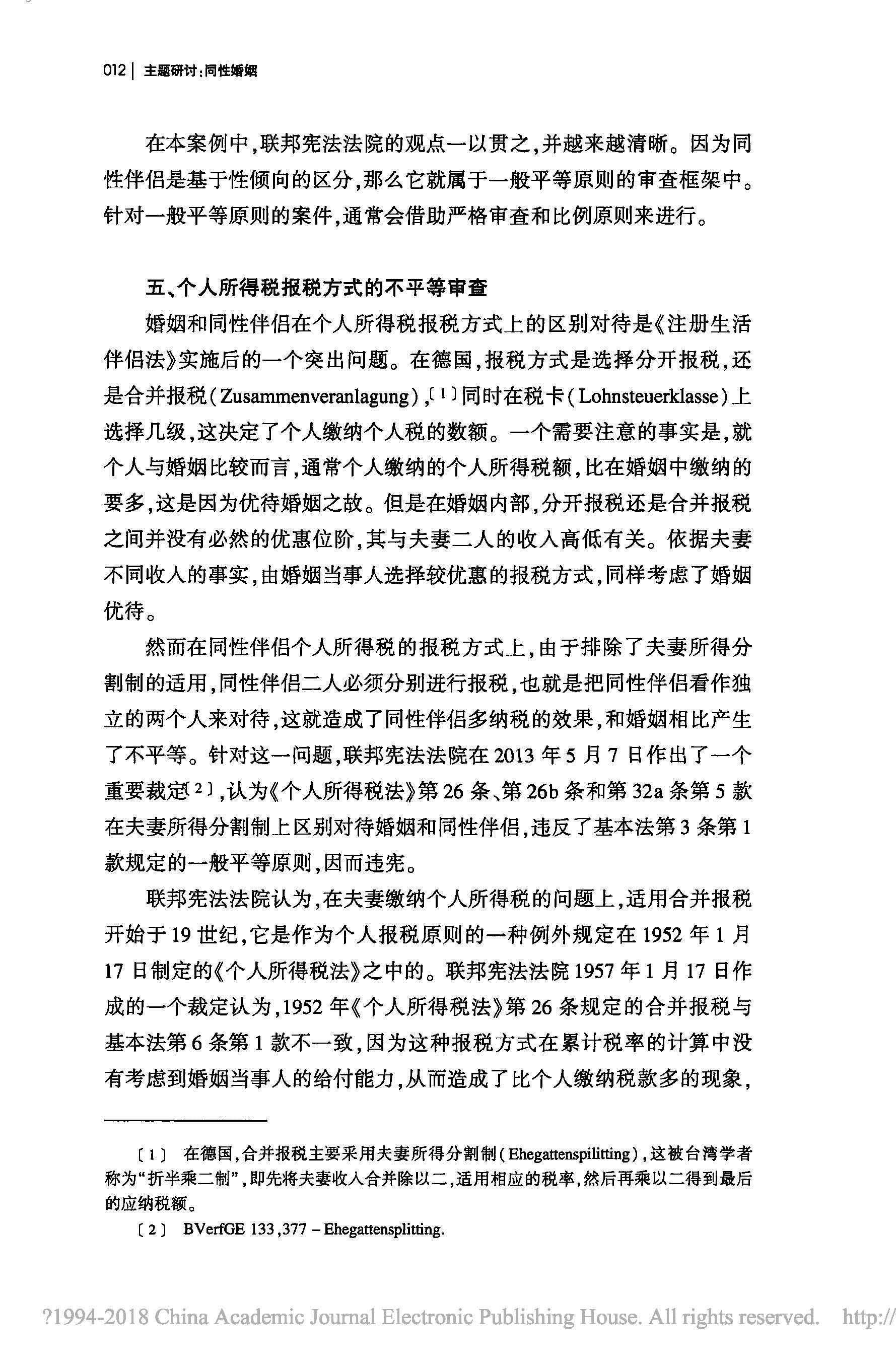 德国同性伴侣的平等保护:以联邦宪法法院的判例为中心