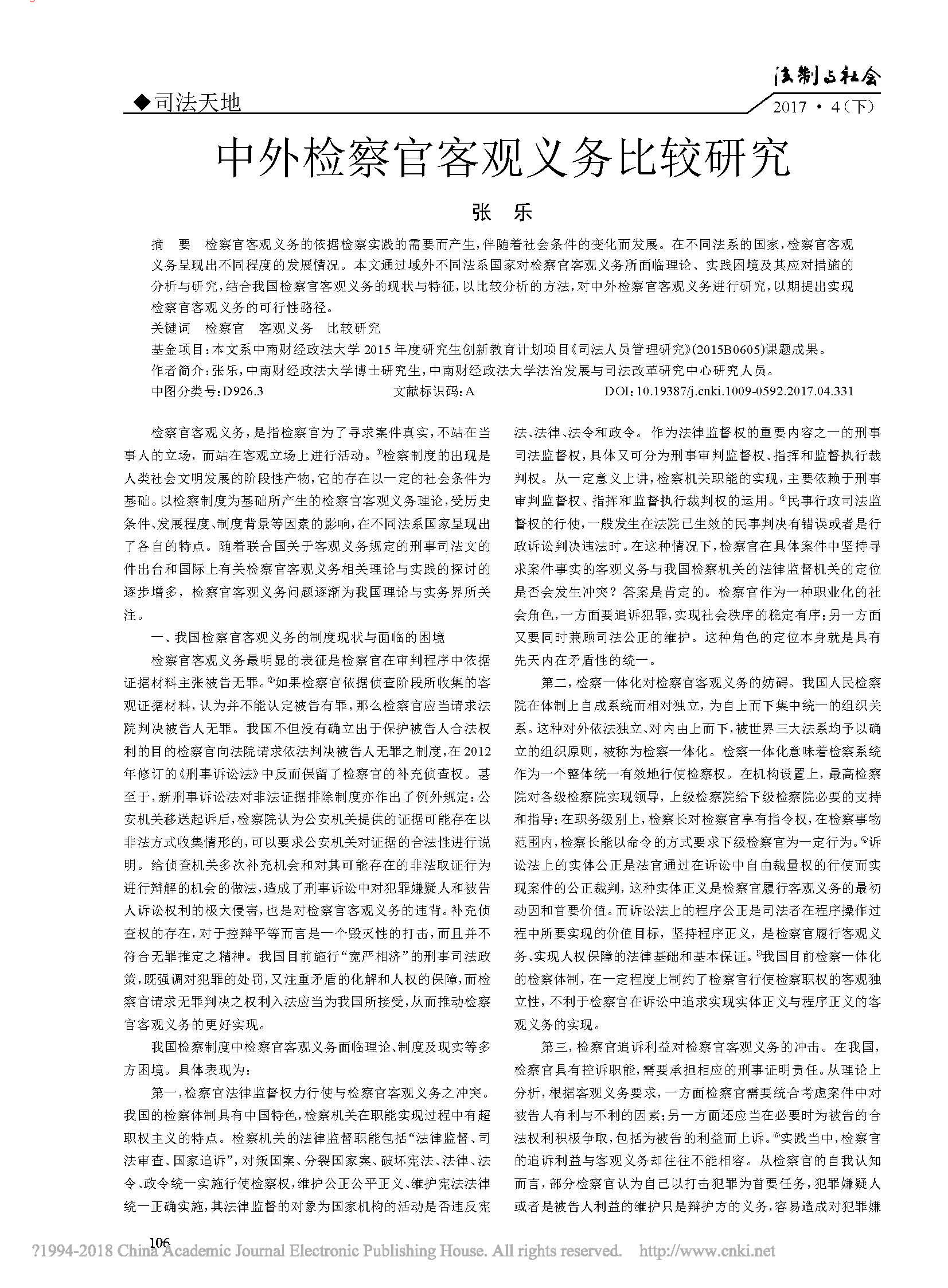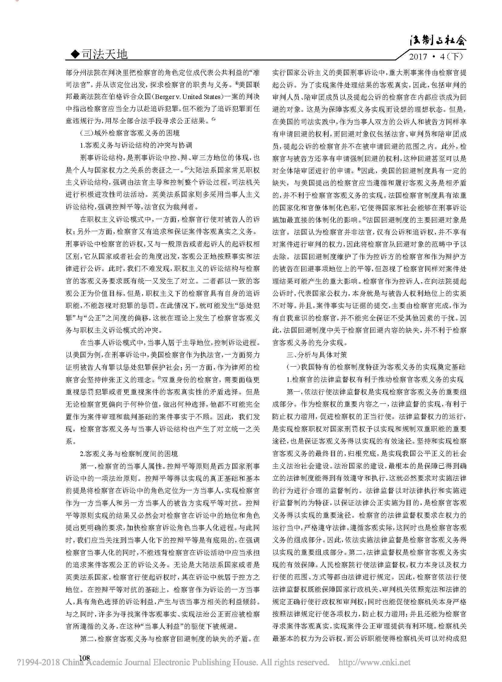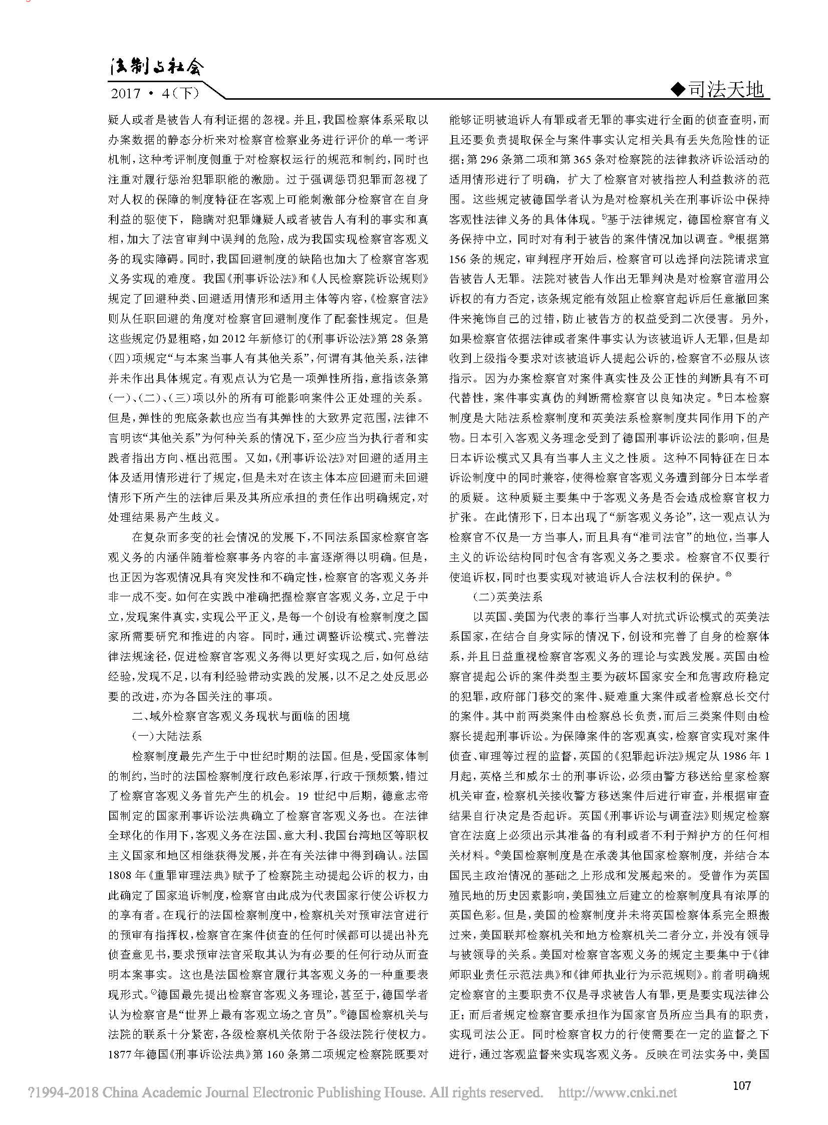 中外检察官客观义务比较研究