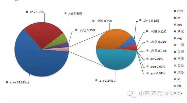 图1-2:截至2015年12月底中国网站注册使用的各类顶级域占比情况