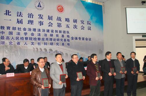 湖北网络广播电视台报道(记者 洪维)-檐前燕语唤村晨,三月由来景片新-,在生机盎然的早春三月和全国两会召开之际,湖北法治发展战略研究院第一届理事会第五次会议暨教育部社会治理法治建设创新团队、中国法学会法治研究基地、最高人民检察院检察应用理论研究基地、湖北省人文社科研究基地全体专家日前在中南财经政法大学召开会议,大家一起见证-中心-研究院-的工作成效,并为新年度各项工作出谋划策。