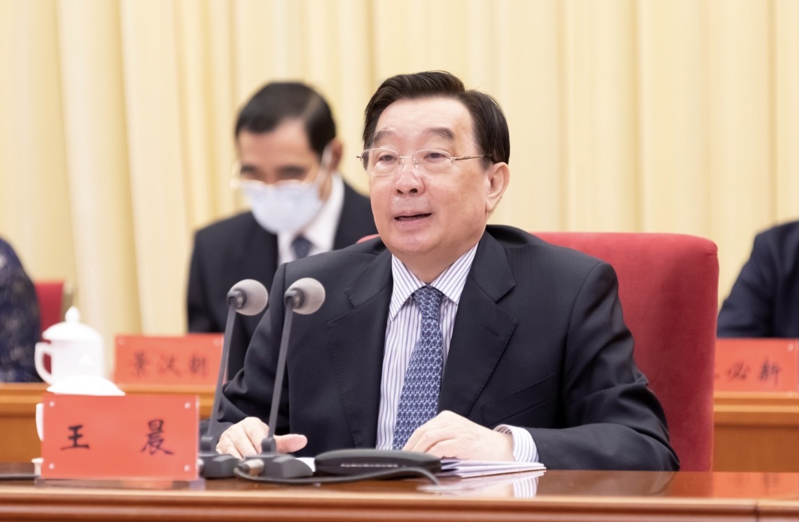 2月20日,全国人大常委会副委员长、中国法学会会长王晨在京出席中国法学会年度常务理事扩大会议并讲话。摄影/戎珊